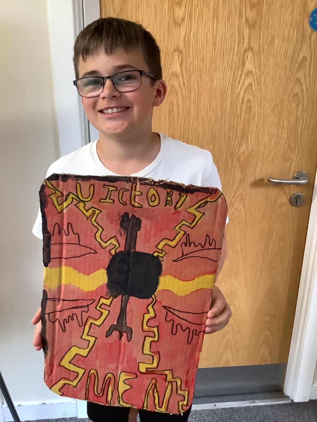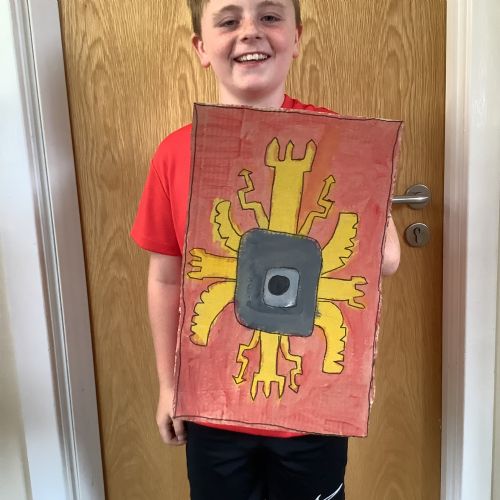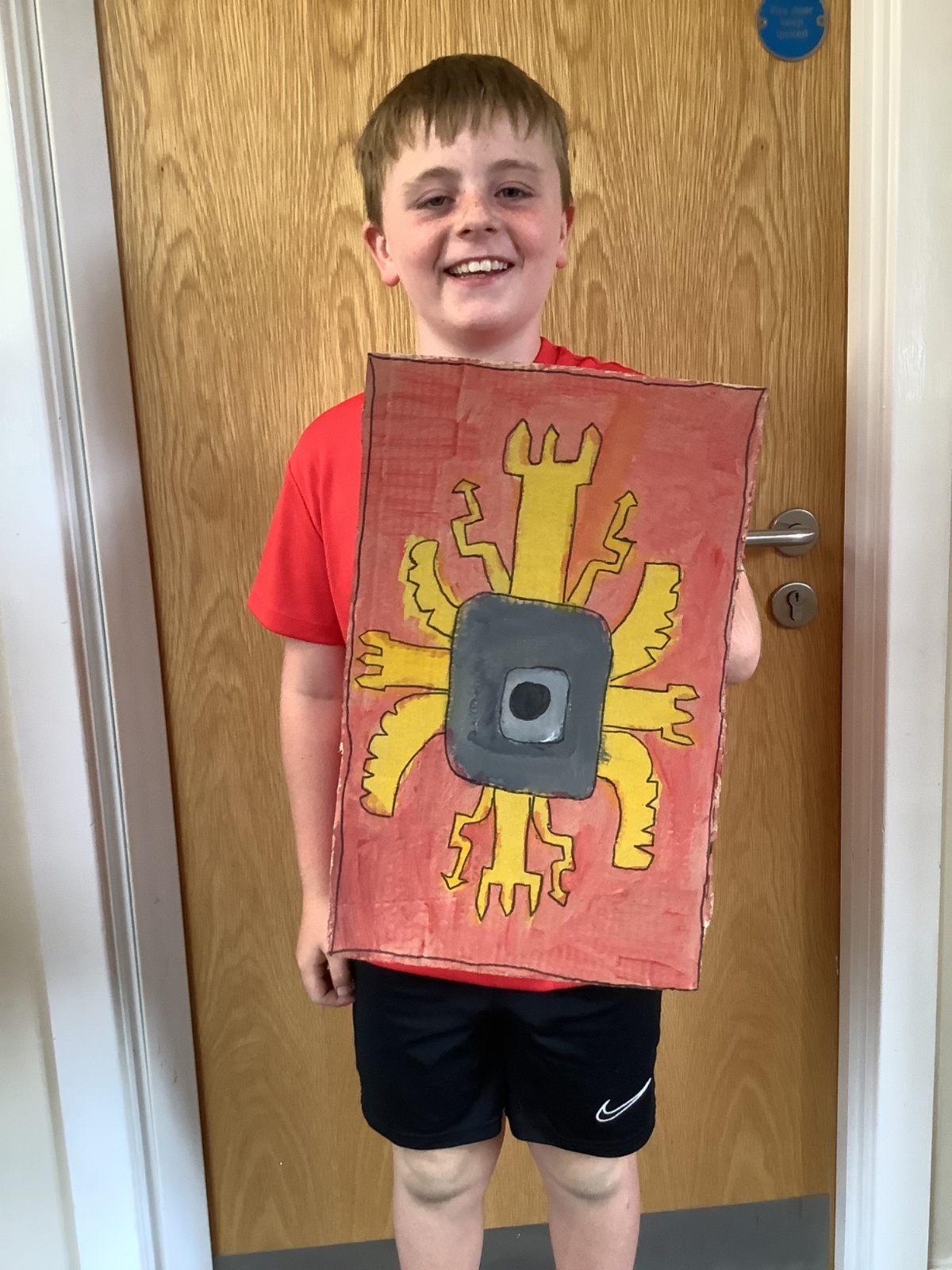 As we come to the end of our time in Year 4, we have once again been exploring our artistic skills in combination with our historical studies. This week we have studied the importance of Roman shields and the designs placed upon them, before creating our own versions with images, colours and symbols important to Roman armies or to ourselves.
