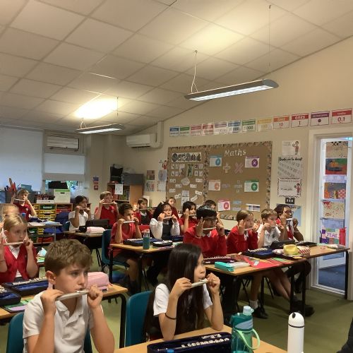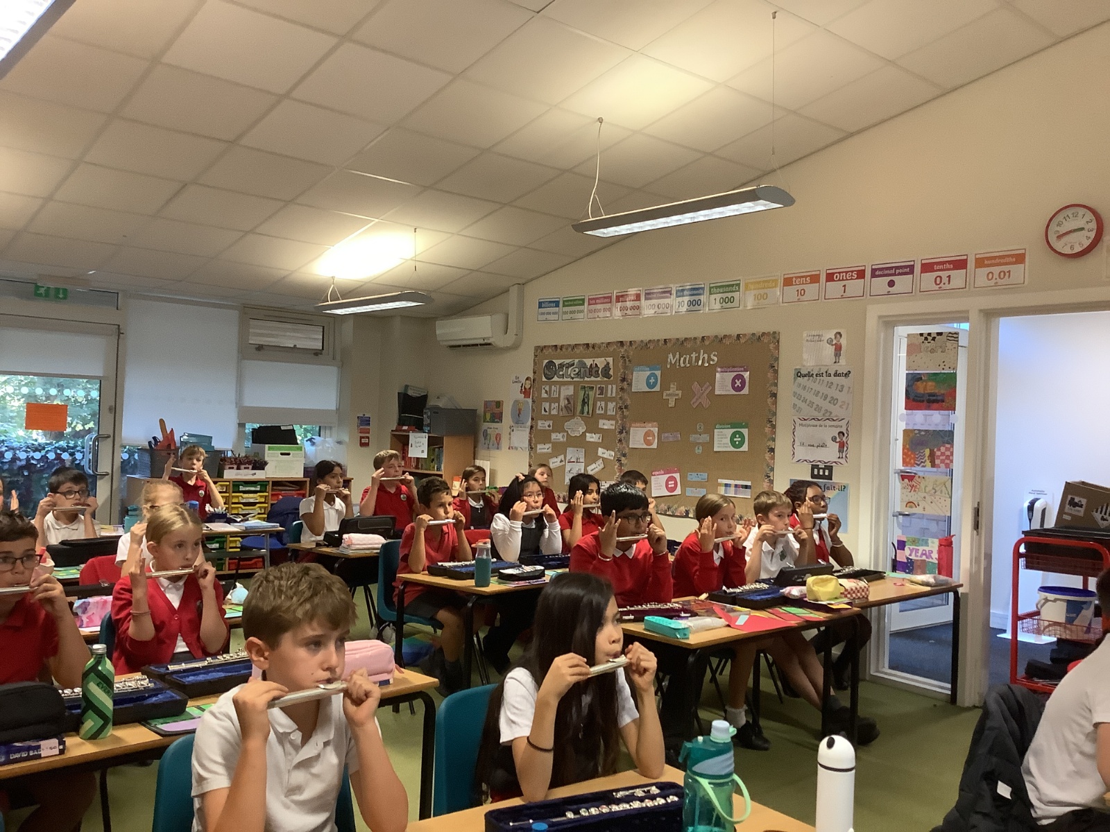 In Music, Year 5 are continuing to develop their flute skills, working hard to perfect both sound and rhythm.