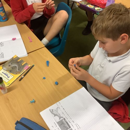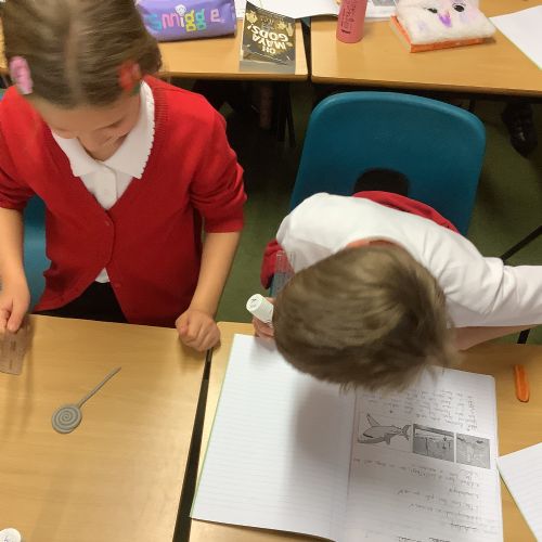 In Science, Year 5 explored water resistance. Using modelling clay, they shaped and reshaped different designs to test how their shape affected how quickly they dropped through water. The children loved comparing which ones travelled faster and discovered how much of a difference shape can make.