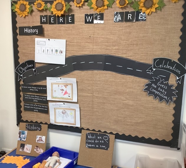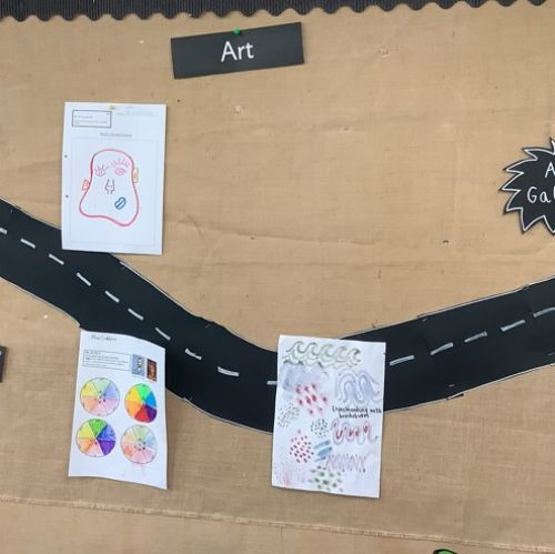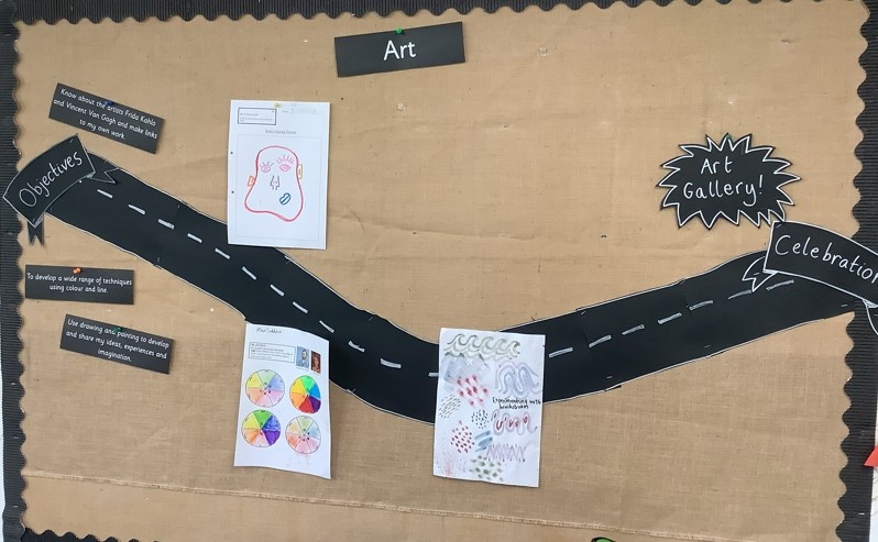 This half term, the Year 1 children are on an exciting learning journey through Art and History. In each classroom, you'll find a display that maps out our curriculum journey which shows our learning objectives to the final celebration point. As we make our way along the path, we proudly showcase the children’s work and discoveries.