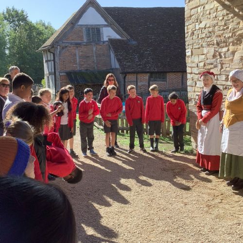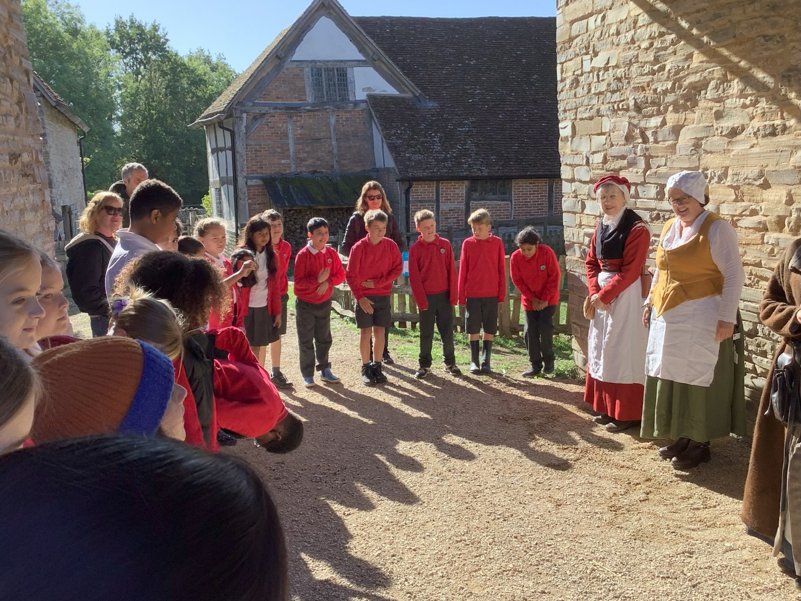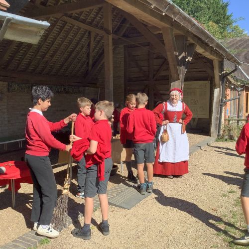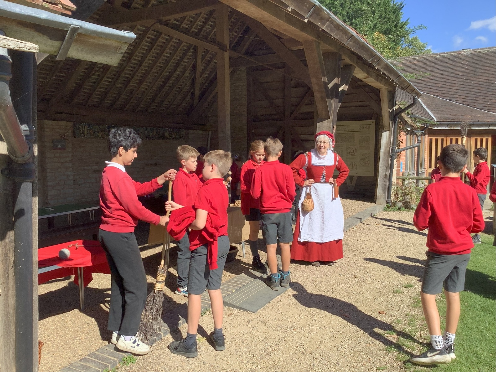 I will never forget the first time I became a Tudor child. What a fantastic experience that really made me feel like I was in the past. When we first arrived, they told us a bit about how Shakespeare grew up. I remember that they said William had a few siblings, but he was most fond of one of his sisters. Then we split up into our groups to do the activities, and my group went to the herb garden first. I was welcomed to a place of beautiful smells. They started talking about how the Tudors didn’t know what bacteria was, so they had different ways of protecting themselves against germs. They explained how the Tudors thought bad smells made people sick and what they did to stop it. We made pouches that were called a nose gay. I used herbs from the garden, and then we crushed them into small pieces. We used lavender, sage, lemon balm, and rosemary. Most of them had a pungent smell, but I think it really did help with the smells.