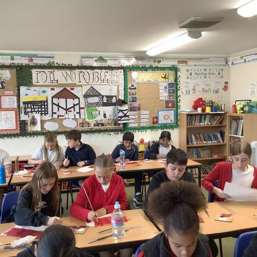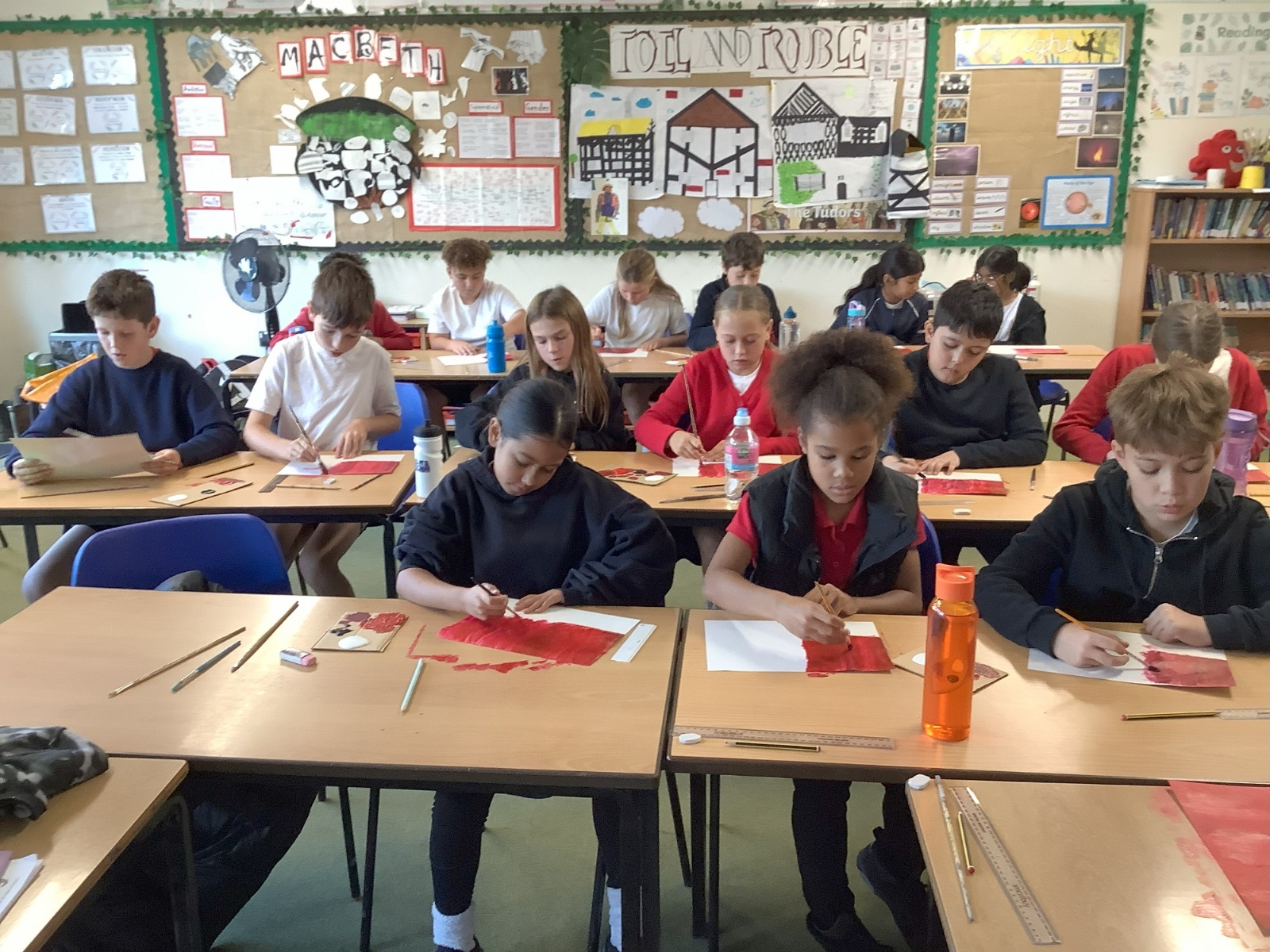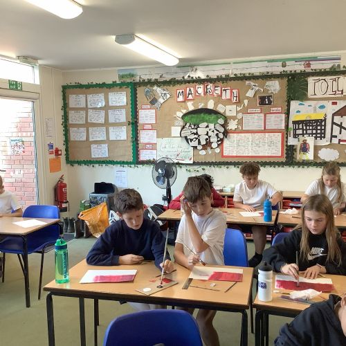 This year, as usual, we’ve started making our Christmas cards early. In Year 6, we’ve taken inspiration from Macbeth (our topic for this half term) and used various shades of red to give our artwork a festive but dramatic Macbeth vibe.