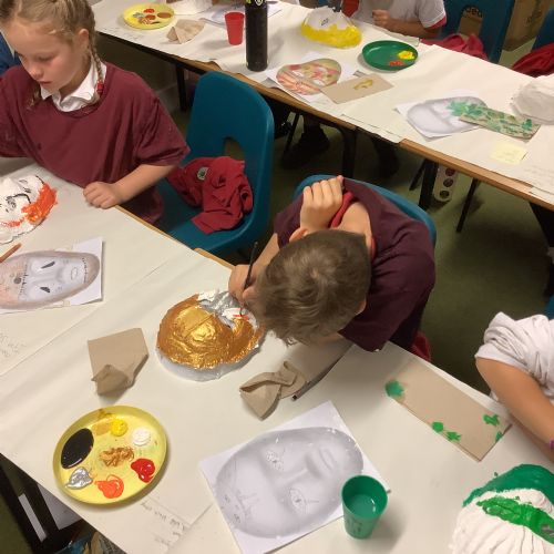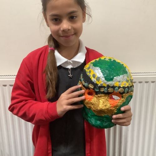 Finally, in Art, Year 5 spent the week bringing their amazing Maya masks to life. Year 5 carefully painted them in bold, vivid colours, and the results were absolutely striking. Each mask was unique and full of personality – a wonderful celebration of creativity and hard work!
