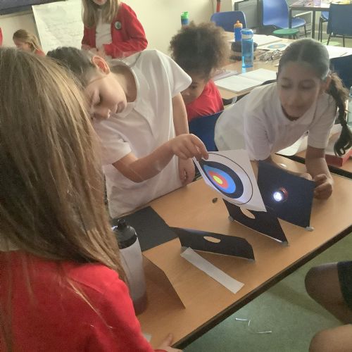 In science, Year 6 has been learning all about light and how it travels. To investigate this, we carried out an experiment to prove that light travels in a straight line.