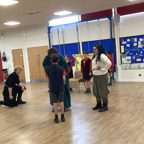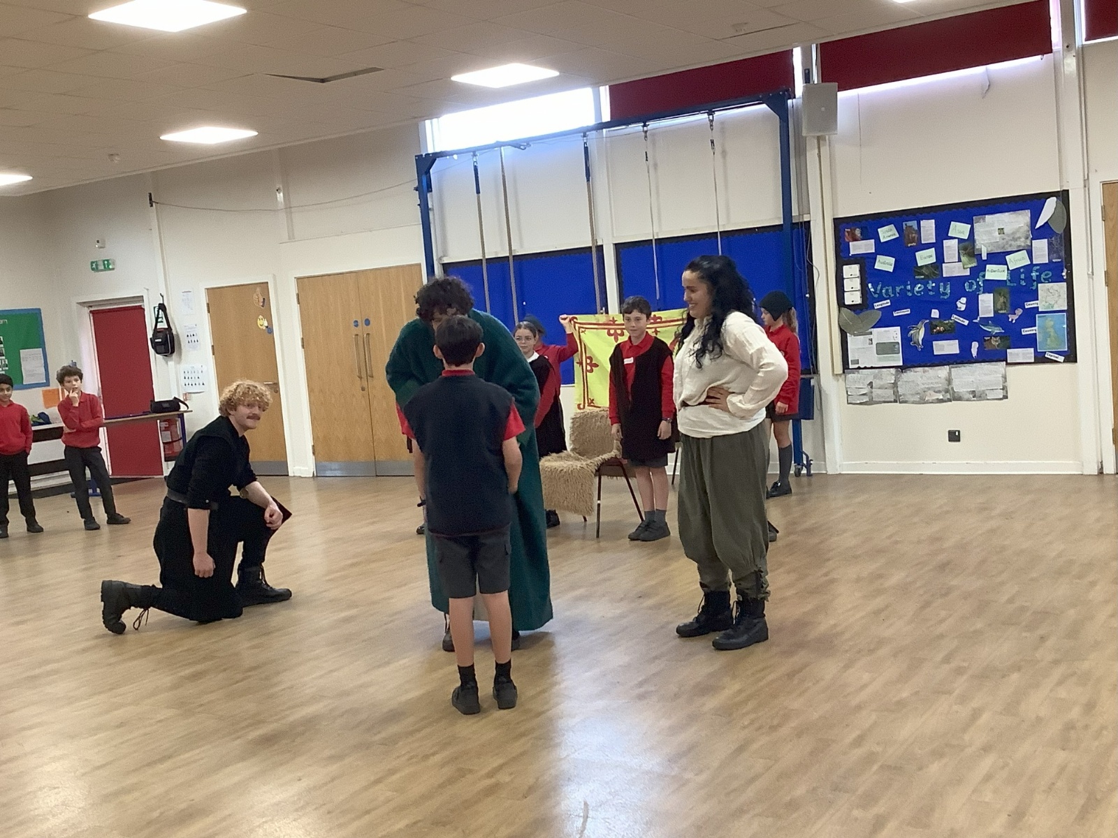It was a wonderful experience that I will never forget, totally unique to Coten End. It was amazing having professional actors come to the school and perform especially for us, I know that all my classmates enjoyed it. Macbeth is one of my favourite Shakespeare plays and all of  the actors were so inspiring Lady Macbeth was mesmerizing  but she is my  personal favourite so I’m biased).The way that they got all of year 6 involved in some way ( whether it be creating the sound of a storm with body percussion  or acting a small role) they still got everyone involved and to enjoy it as well