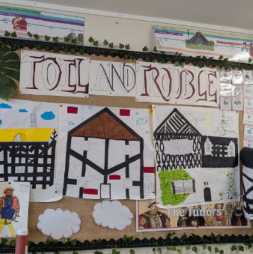 In our DT lessons, Year 6 has been working together to create a collaborative Tudor Street! We have been learning about the features of Tudor houses, such as timber frames, thatched roofs, and overhanging upper floors.