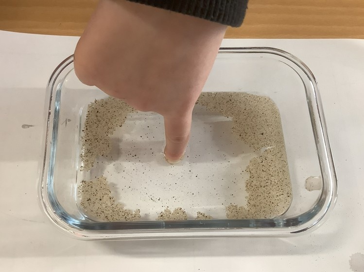 To see how handwashing really works, we carried out a fun experiment using a bowl of water and a sprinkle of pepper to represent germs. When we dipped our unwashed fingers in, nothing much happened. But after a good scrub with soap and water, we tried again and the “germs” magically moved away from our clean fingers!