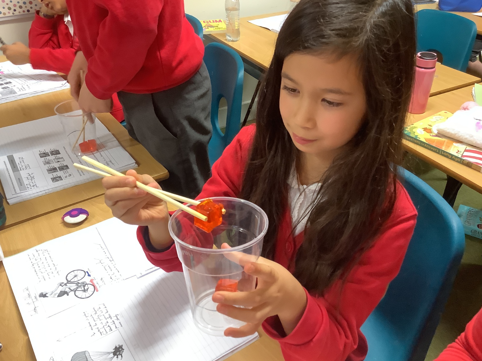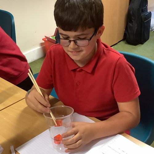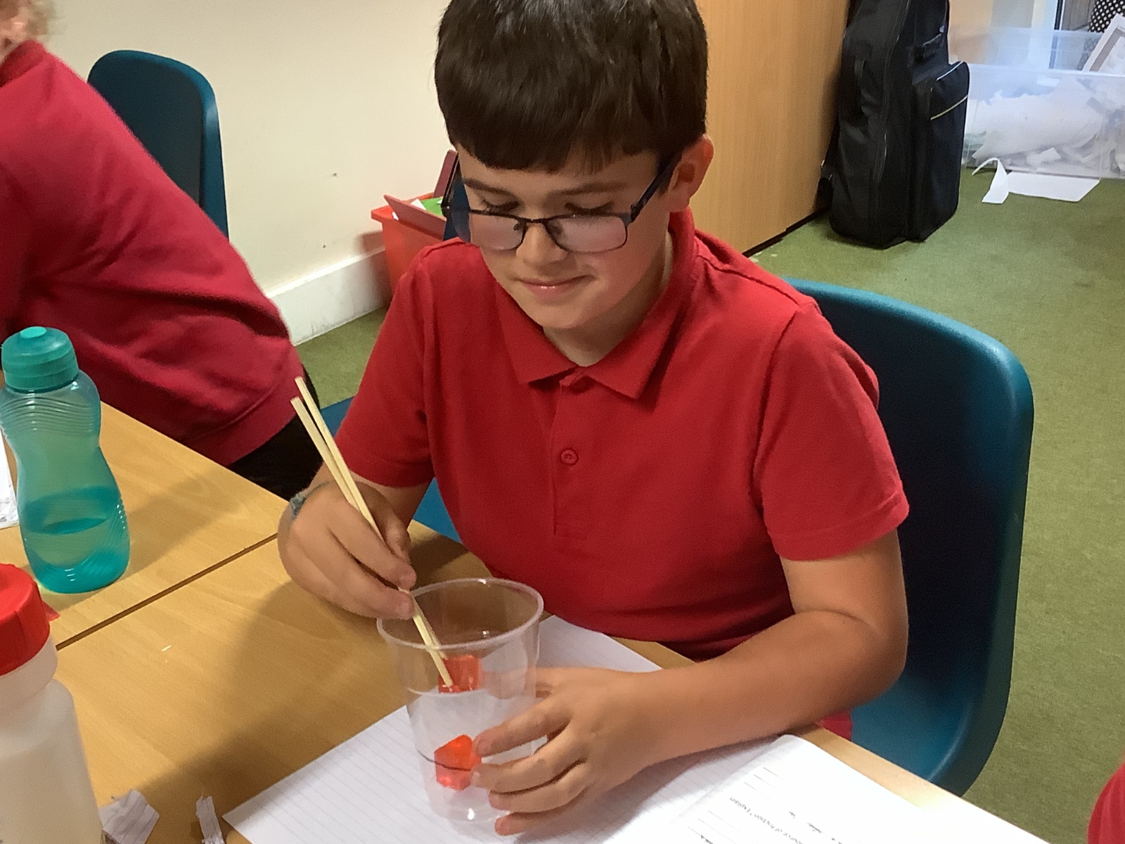 In Science, Year 5 have been investigating friction – the force that slows things down when they rub against each other. To explore this, the children carried out a fun and slightly slippery experiment using jelly cubes! With chopsticks, they tested how easy (or tricky!) it was to pick up jelly cubes coated in salt compared to those covered in oil. The class discovered that the salt created more friction, making it easier to grip the jelly, while the oil made the cubes slippery, reducing friction.