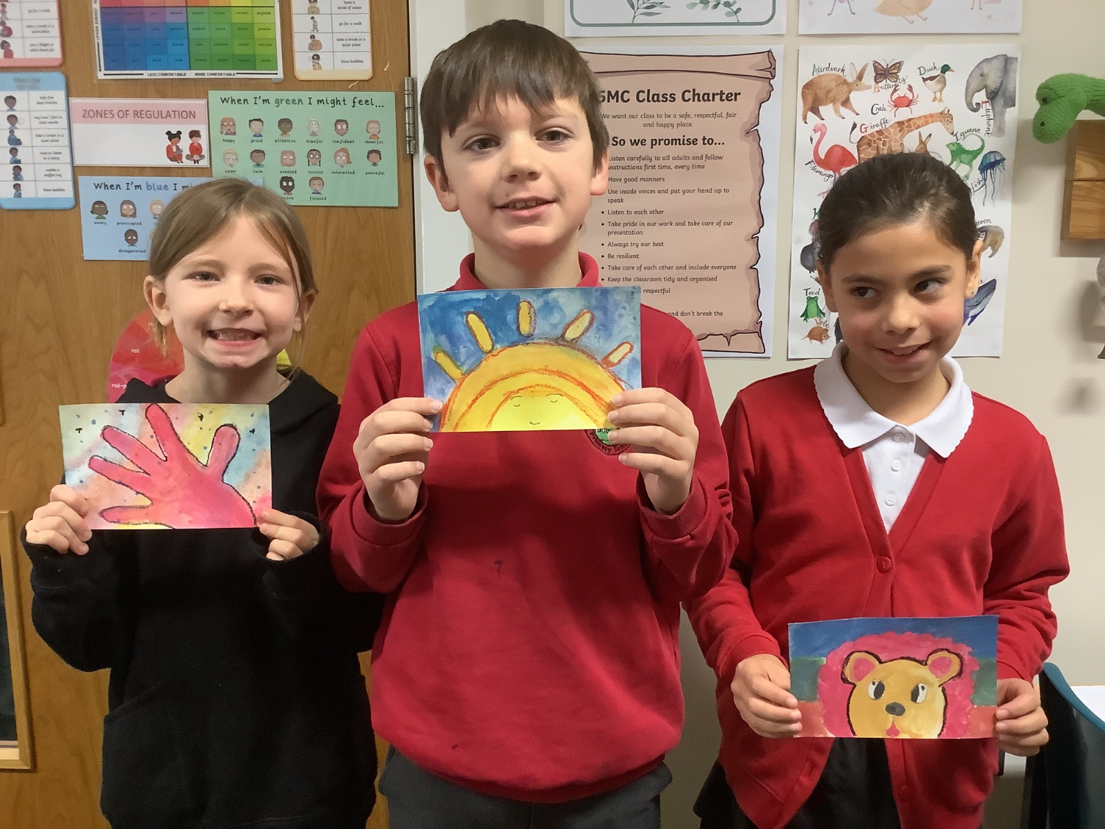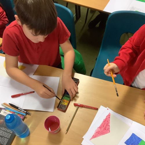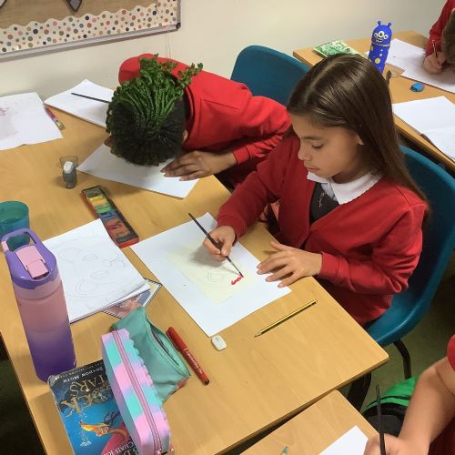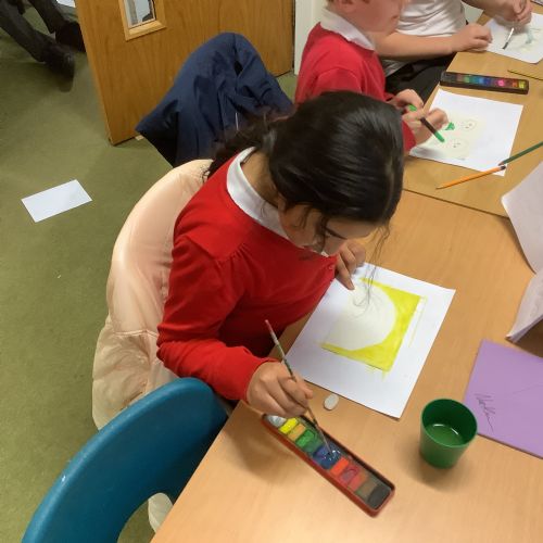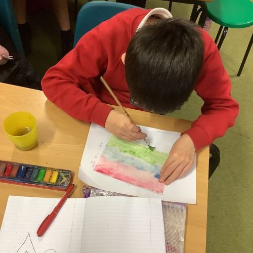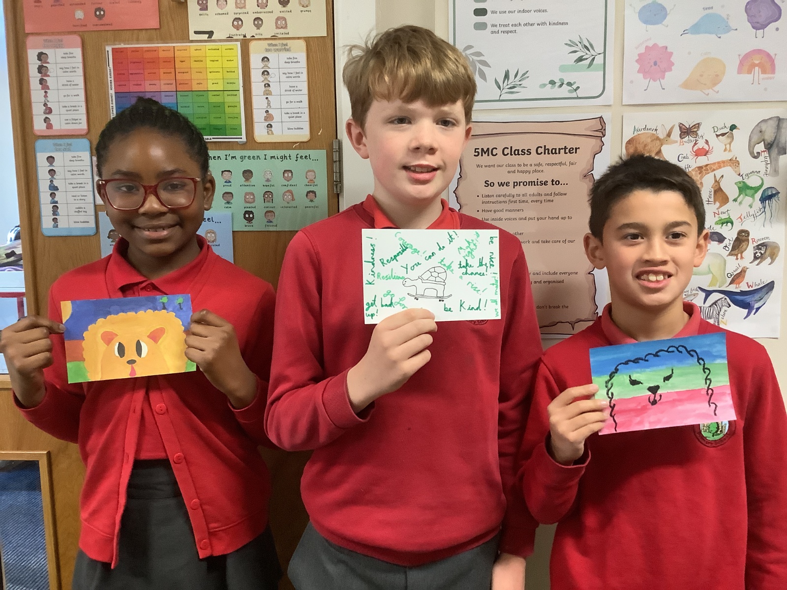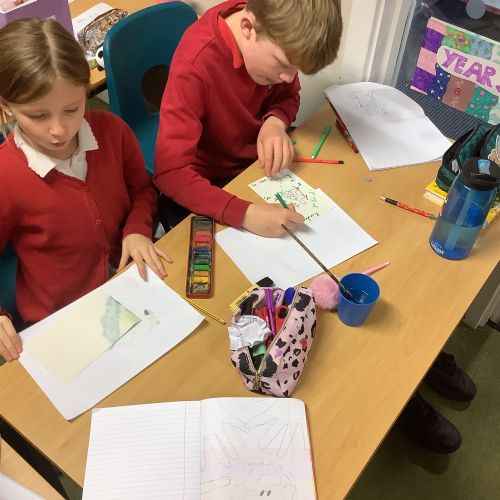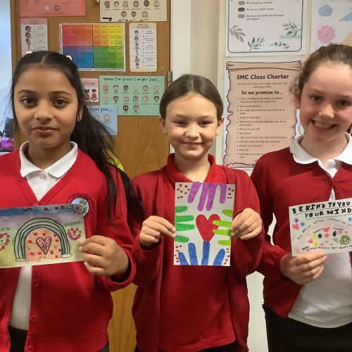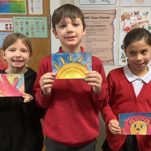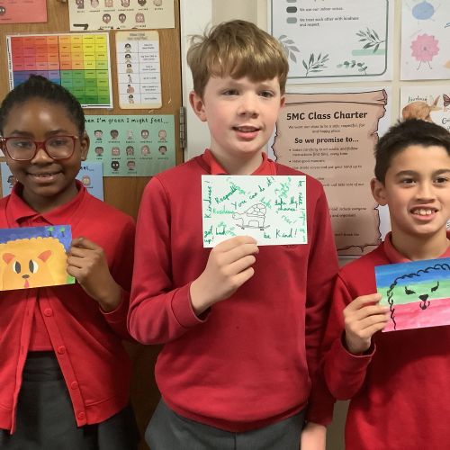 Next, the children designed postcard-sized pieces of artwork using watercolours, oil pastels or pens. Each piece represented one or more of the Stowe Valley MAT values: Kindness, Confidence and Resilience. The final artworks were thoughtful, expressive and full of colour—an inspiring celebration of these important values.