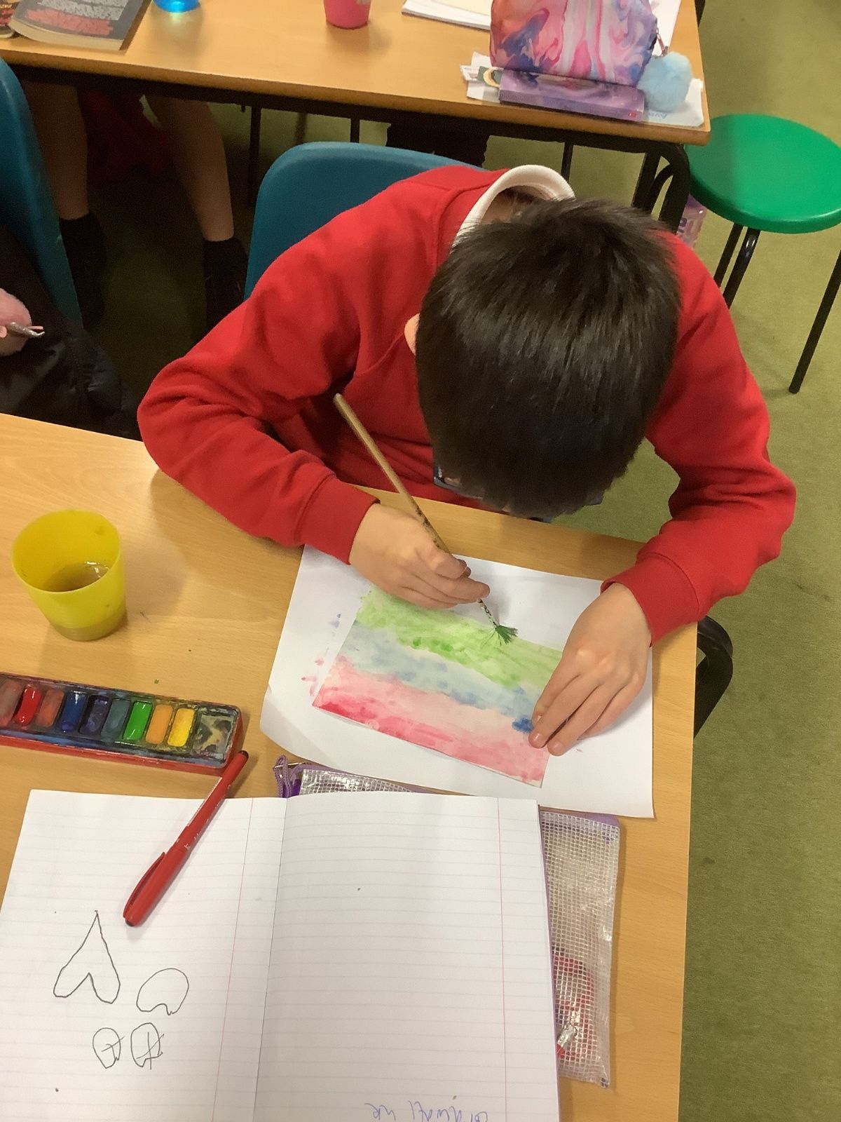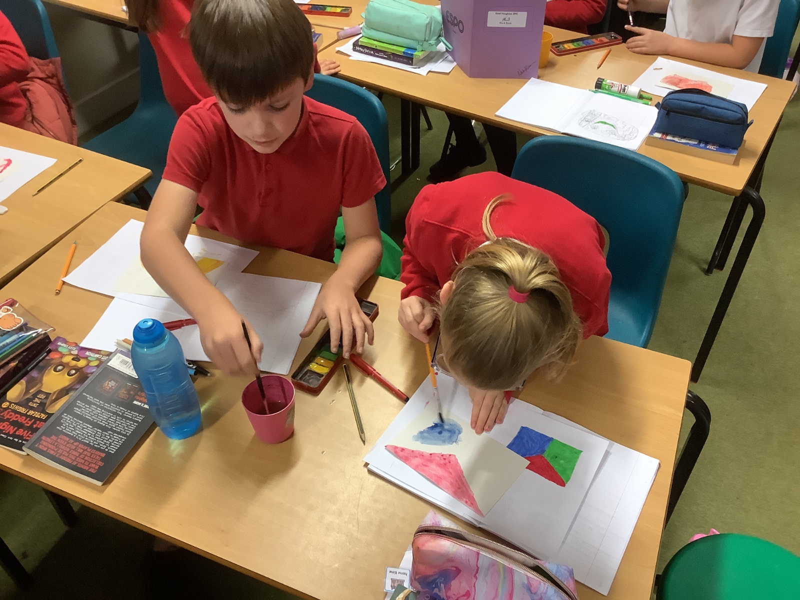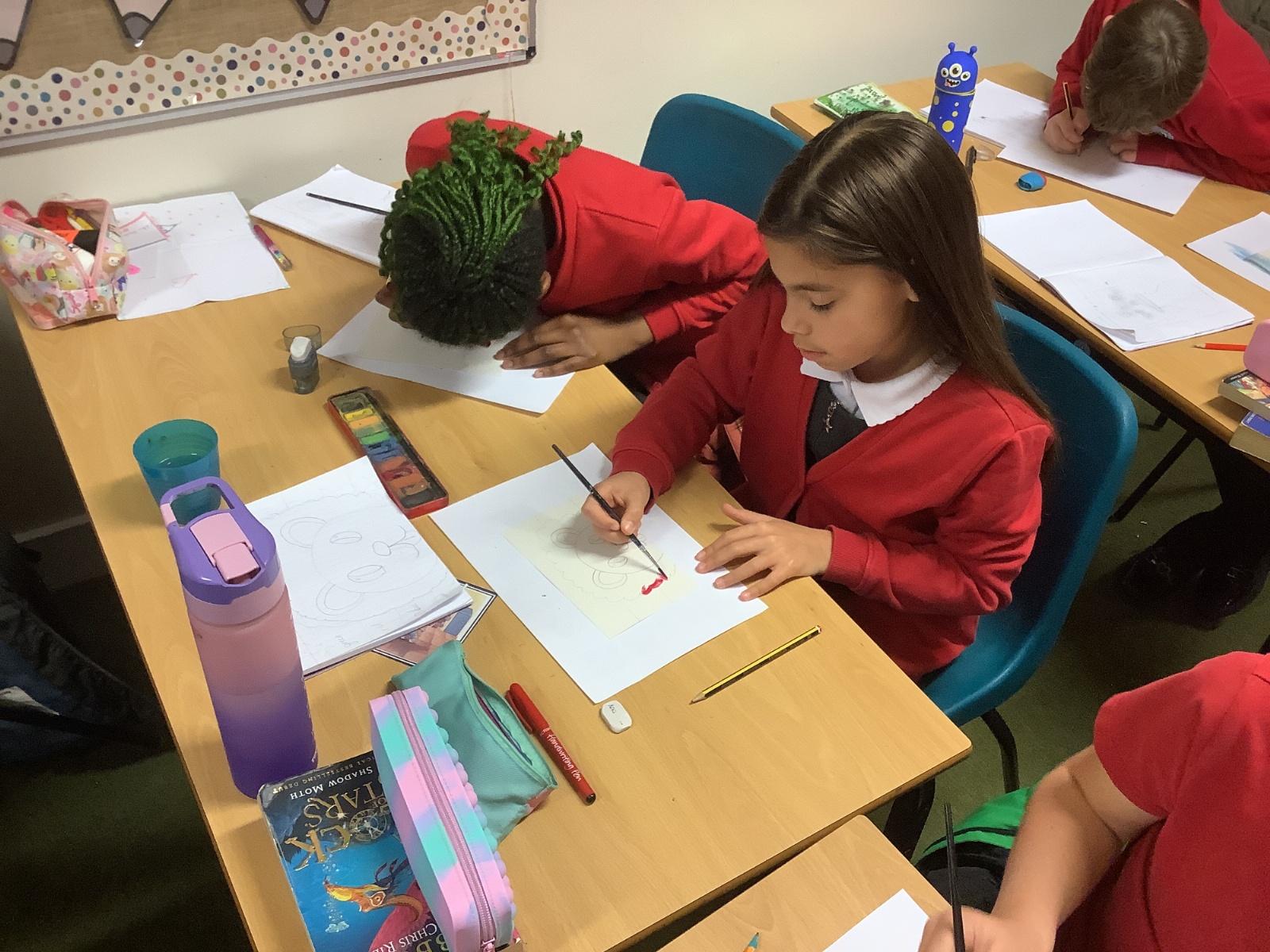 Next, the children designed postcard-sized pieces of artwork using watercolours, oil pastels or pens. Each piece represented one or more of the Stowe Valley MAT values: Kindness, Confidence and Resilience. The final artworks were thoughtful, expressive and full of colour—an inspiring celebration of these important values.