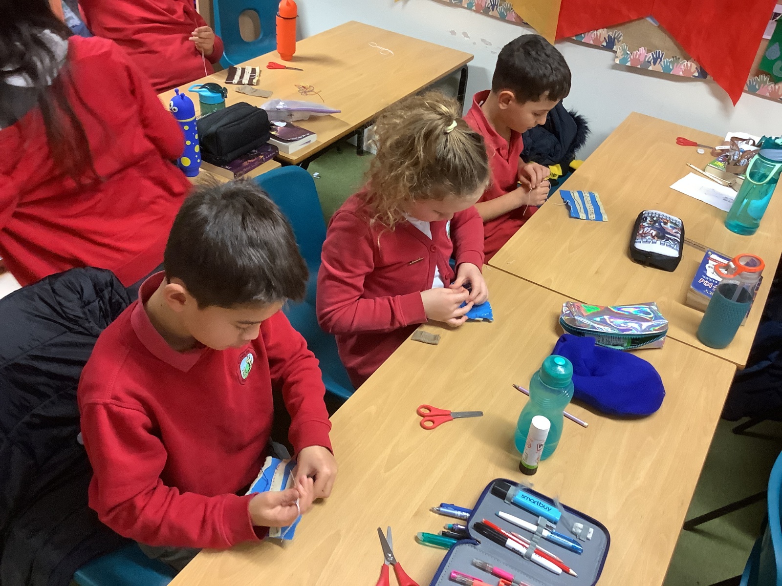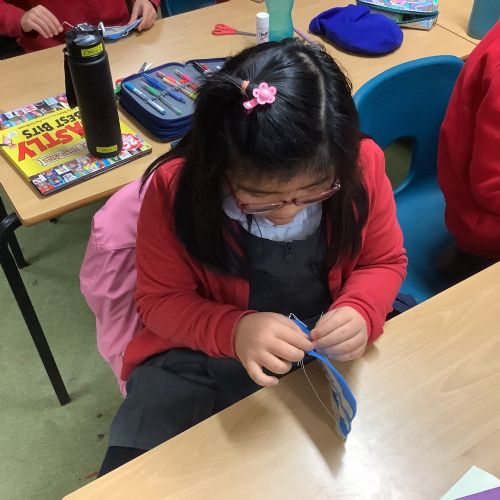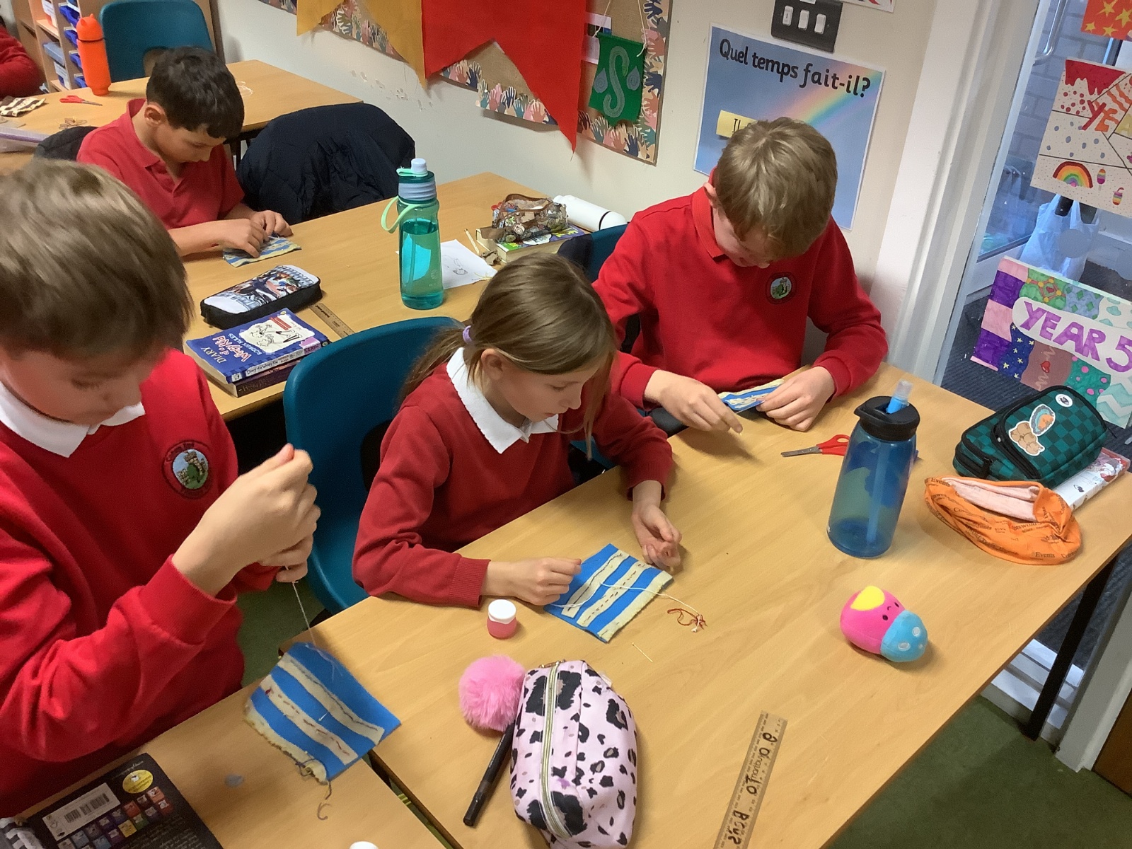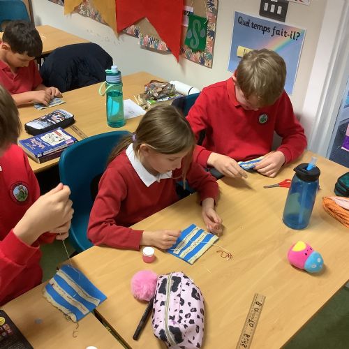 Finally, in Design and Technology, Year 5 practised a range of sewing stitches: the overstitch, running stitch, backstitch and blanket stitch. The children showed impressive concentration and patience as they worked, and everyone made brilliant progress.