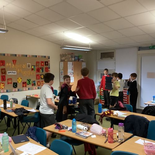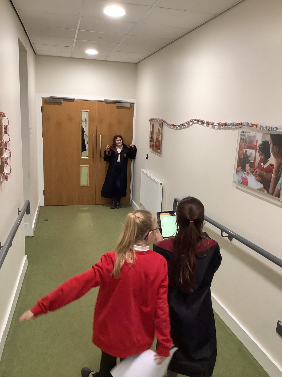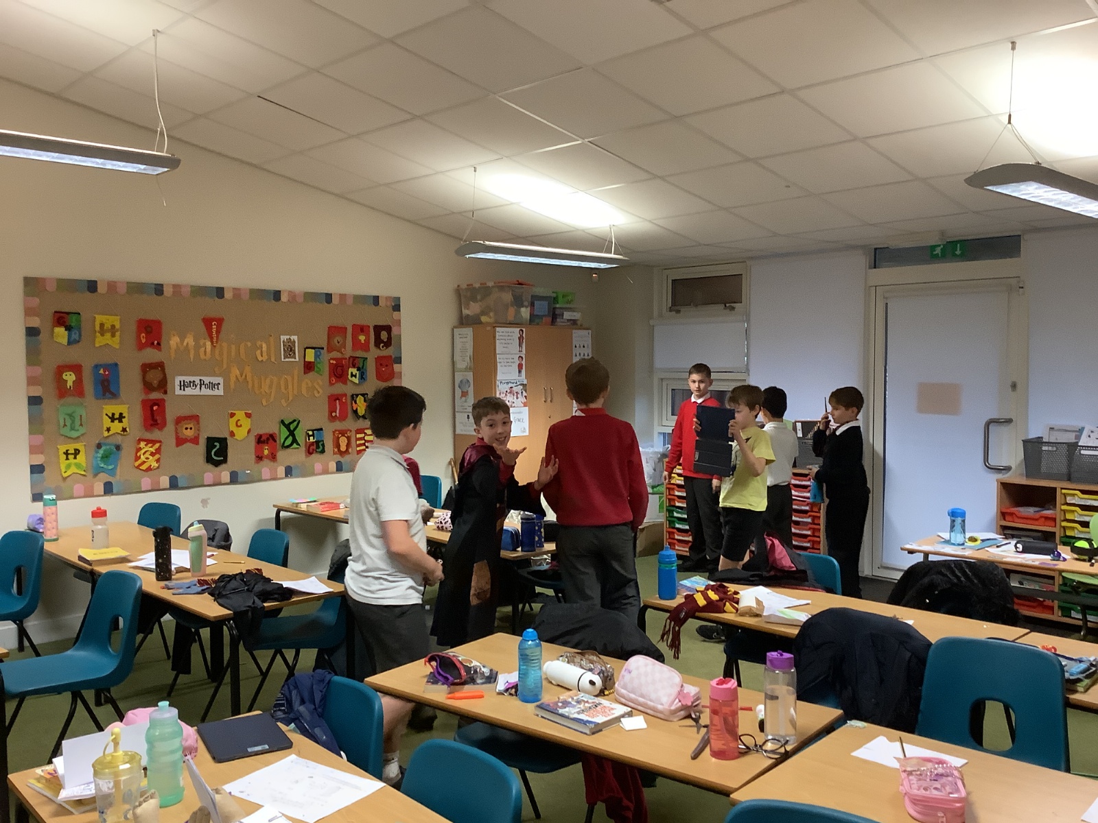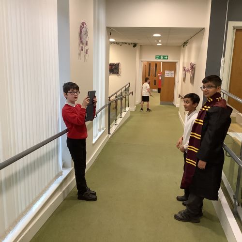 In Geography, the children prepared for a walk around Warwick. They learned how to identify human and physical features and discussed how places are chosen as settings for films. During the walk, Year 5 explored the town and used their imagination to create scenes for their own Harry Potter interpretations, thinking carefully about atmosphere and location.