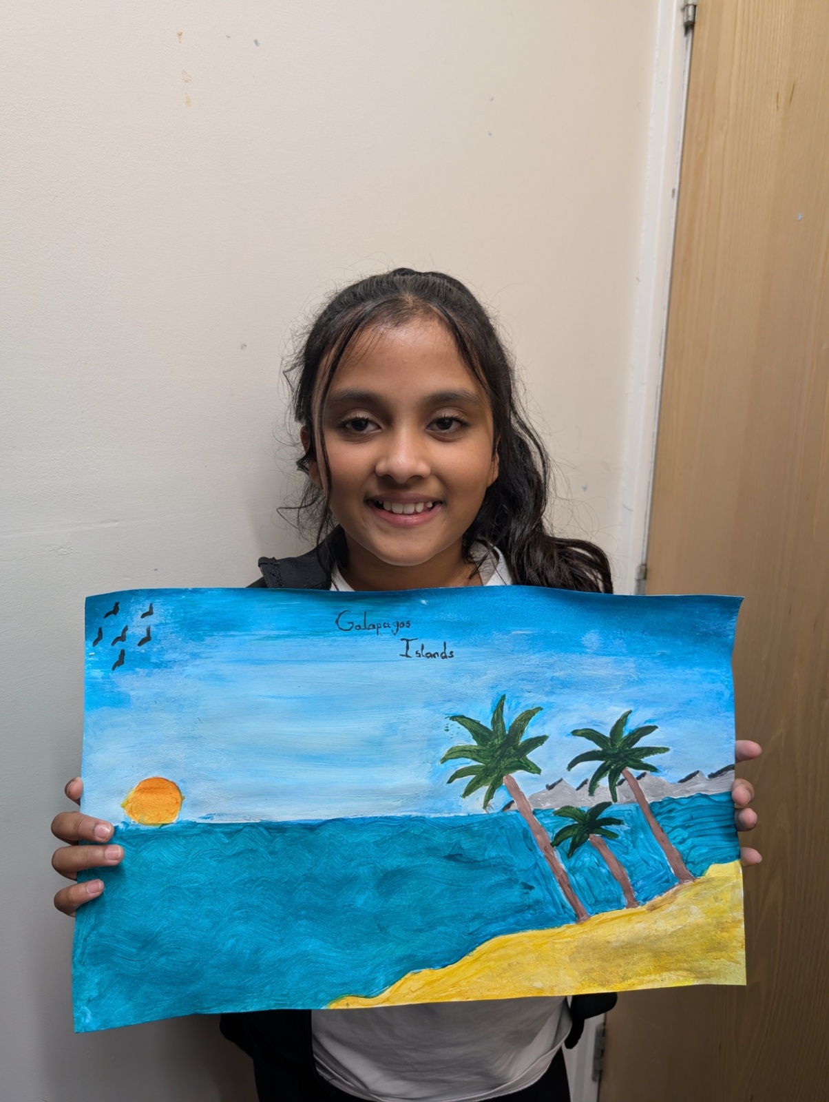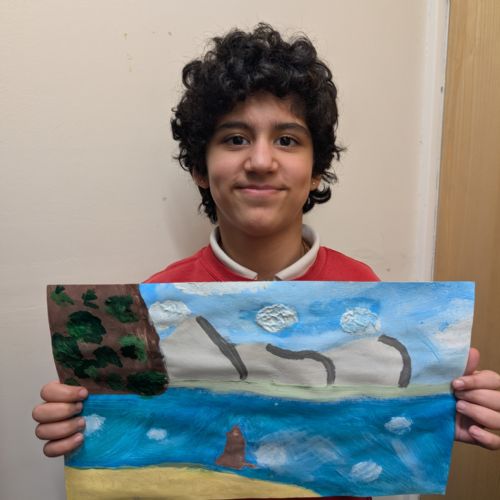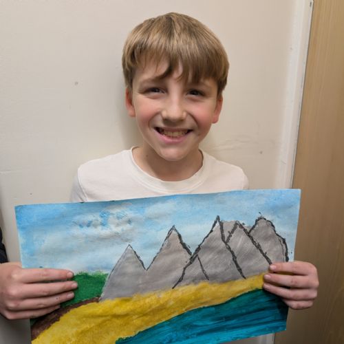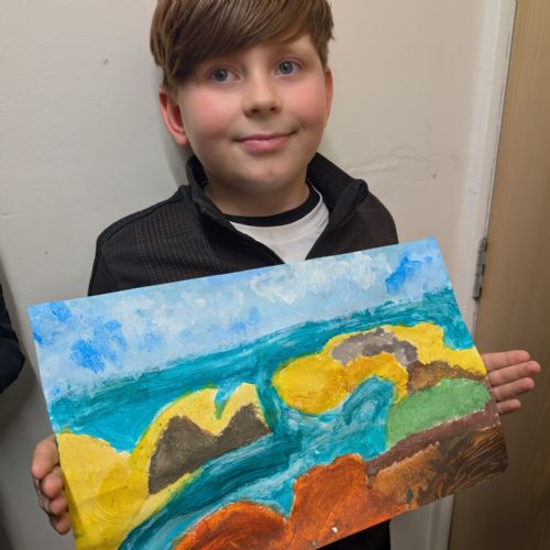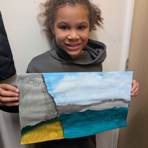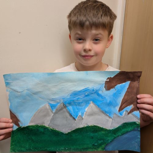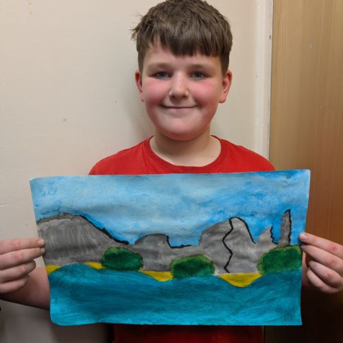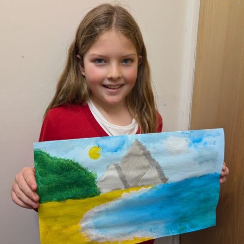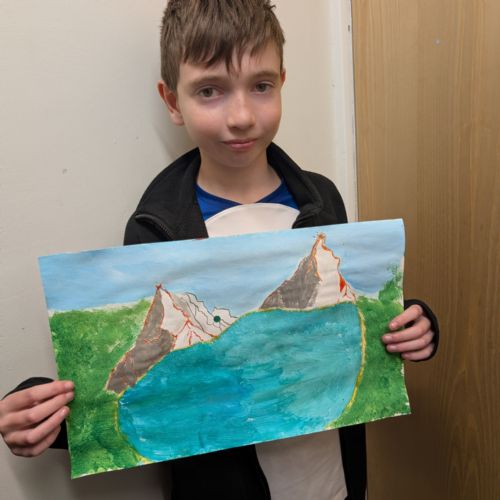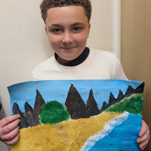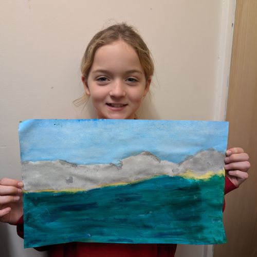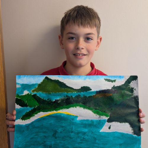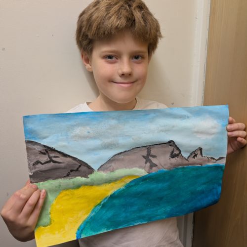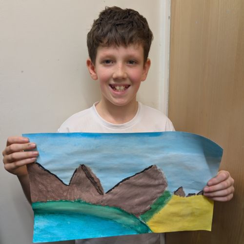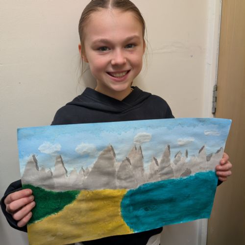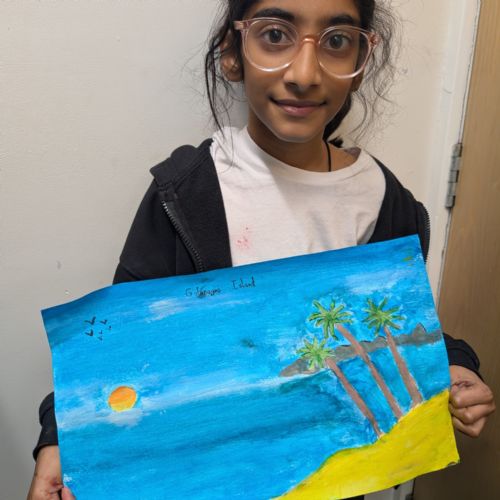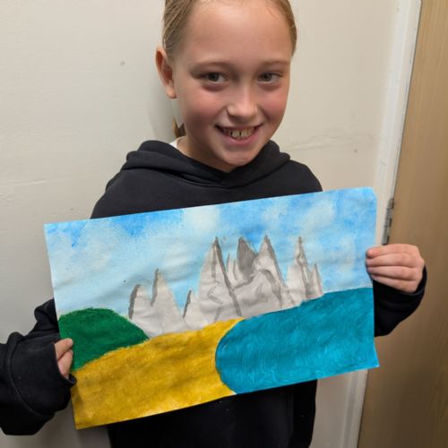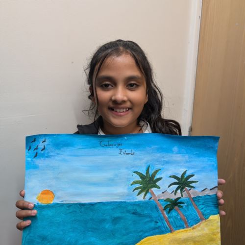 In art this week, we have been creating landscape paintings inspired by the Galápagos Islands. We used acrylic paint and practised different techniques, such as mixing colours, layering paint and adding detail to create texture.