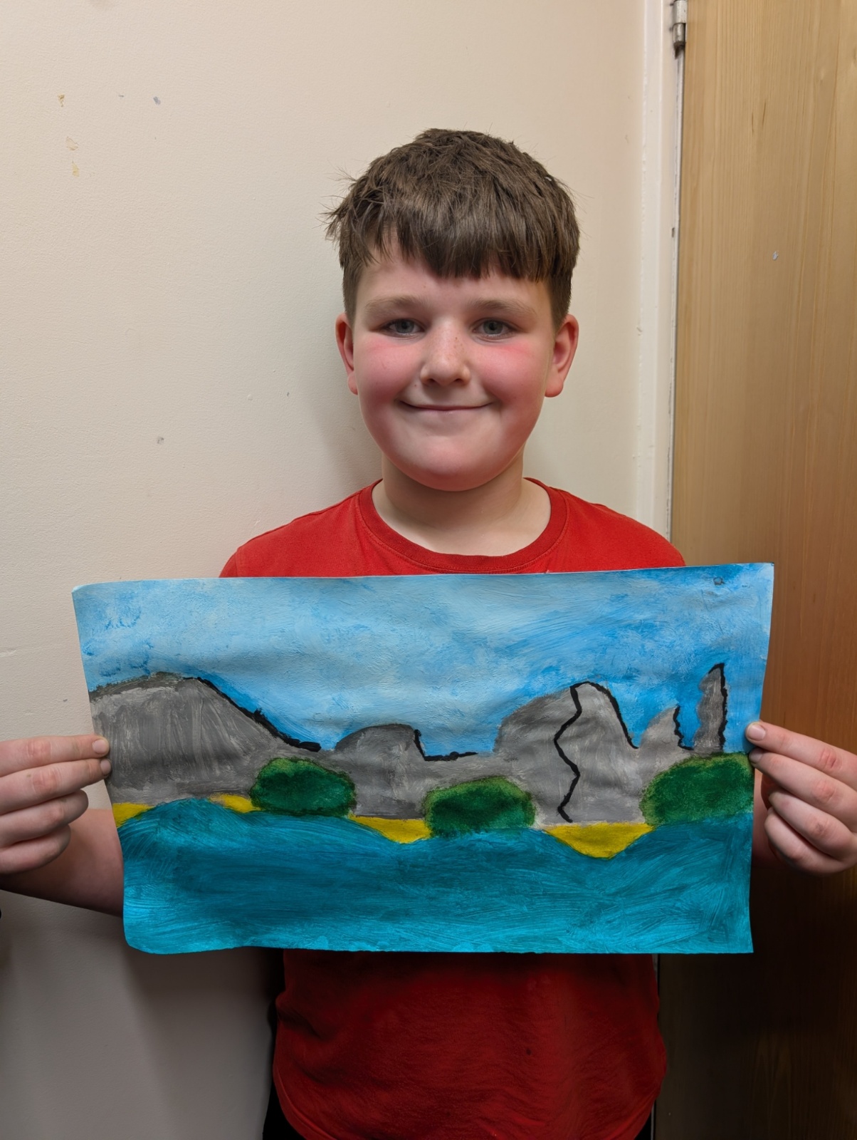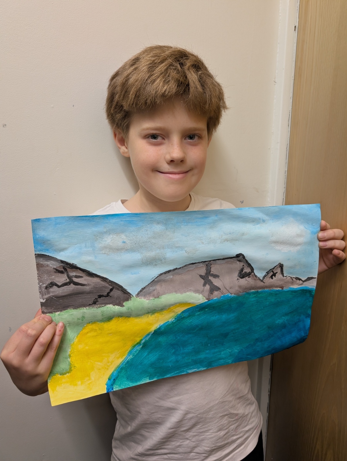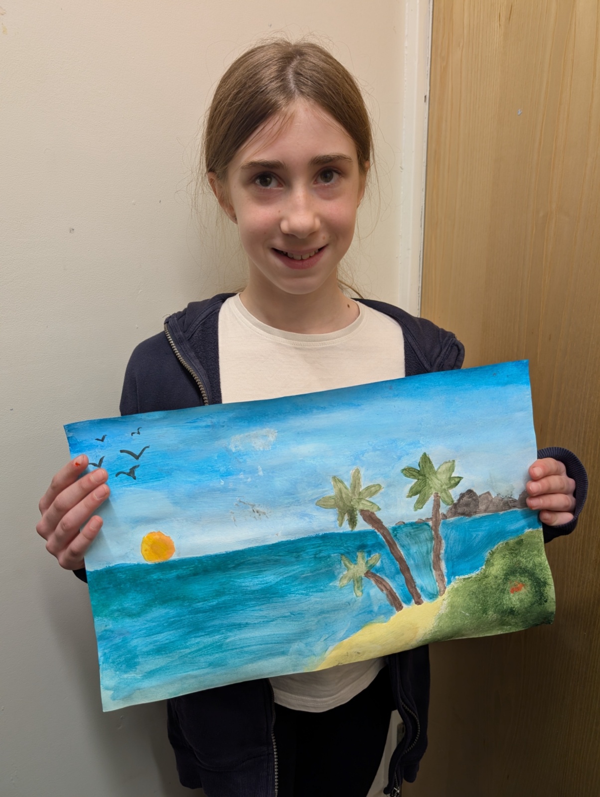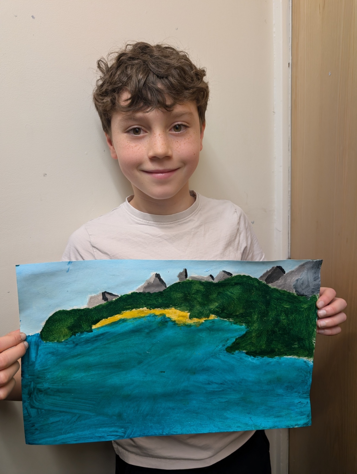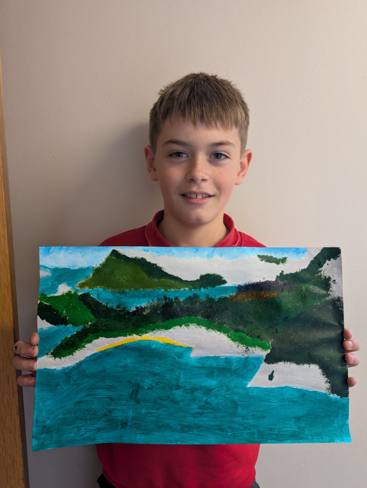 In art this week, we have been creating landscape paintings inspired by the Galápagos Islands. We used acrylic paint and practised different techniques, such as mixing colours, layering paint and adding detail to create texture.