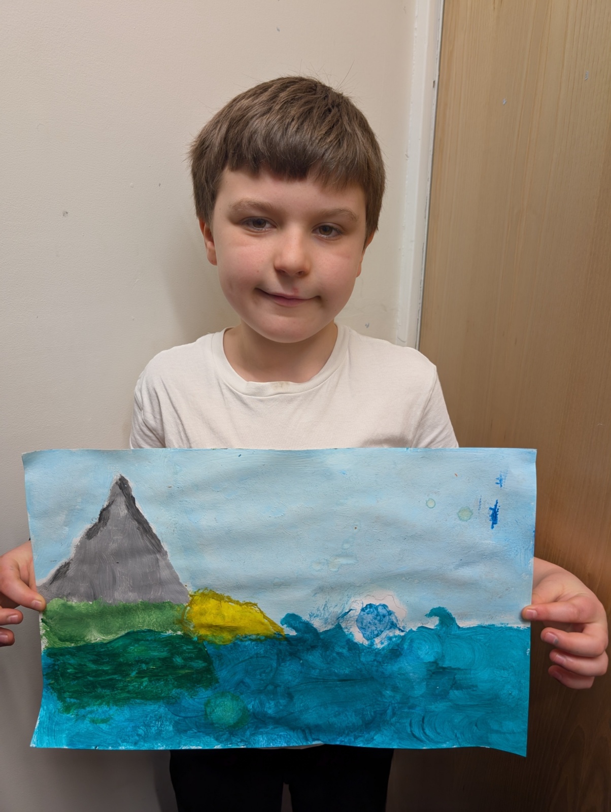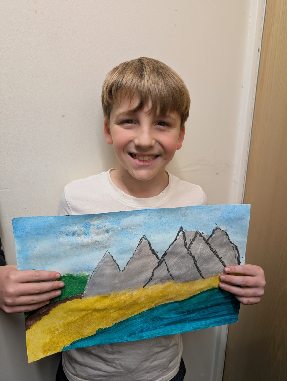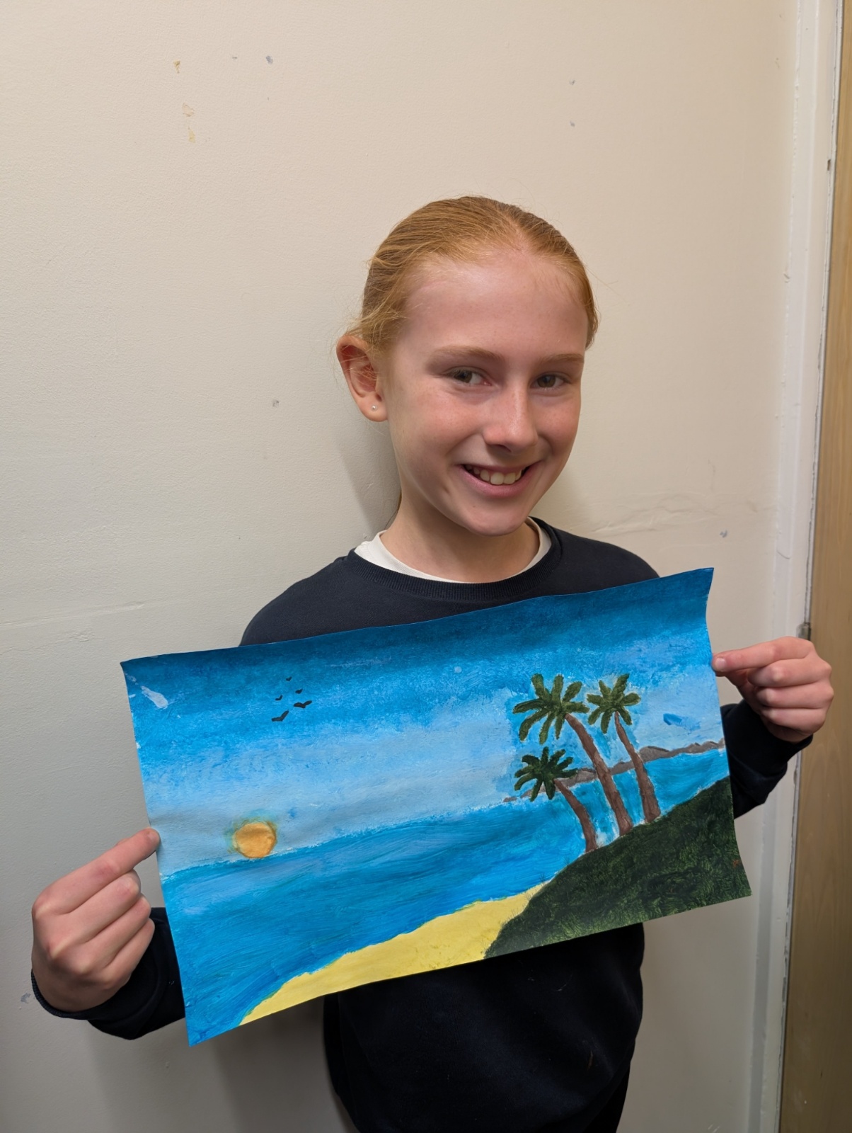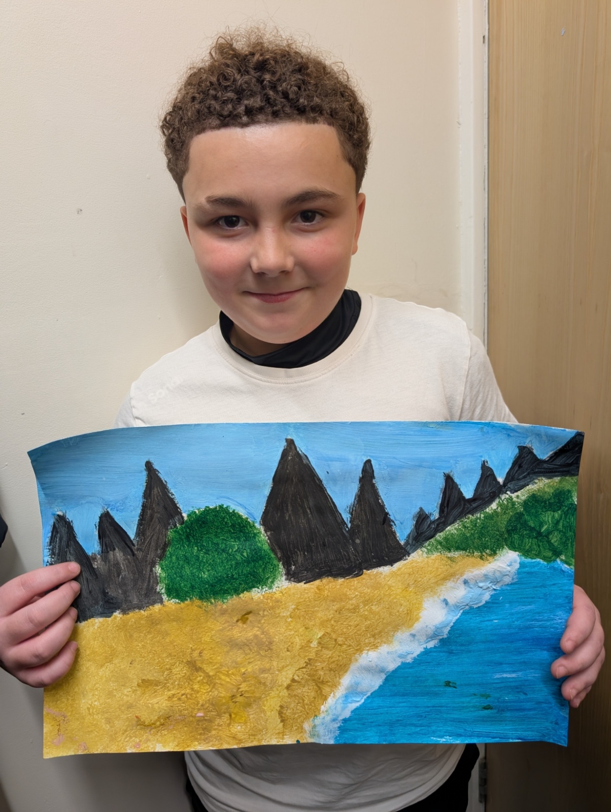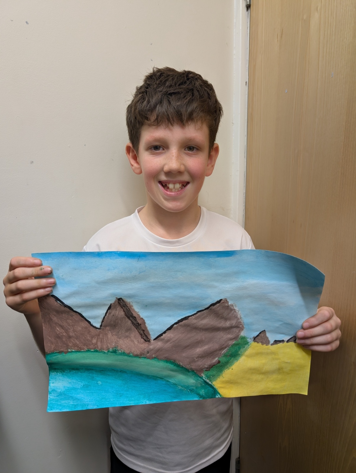 In art this week, we have been creating landscape paintings inspired by the Galápagos Islands. We used acrylic paint and practised different techniques, such as mixing colours, layering paint and adding detail to create texture.