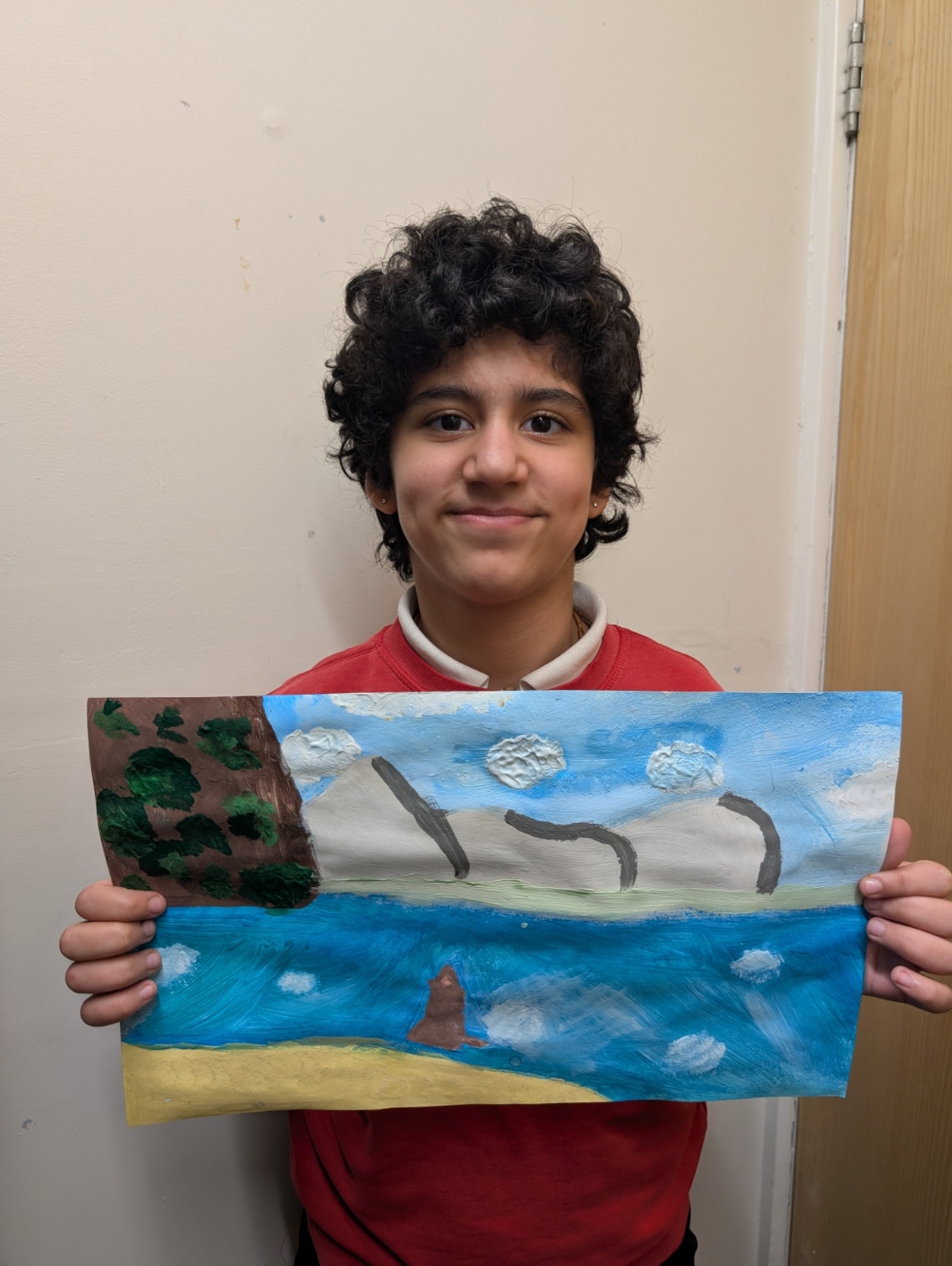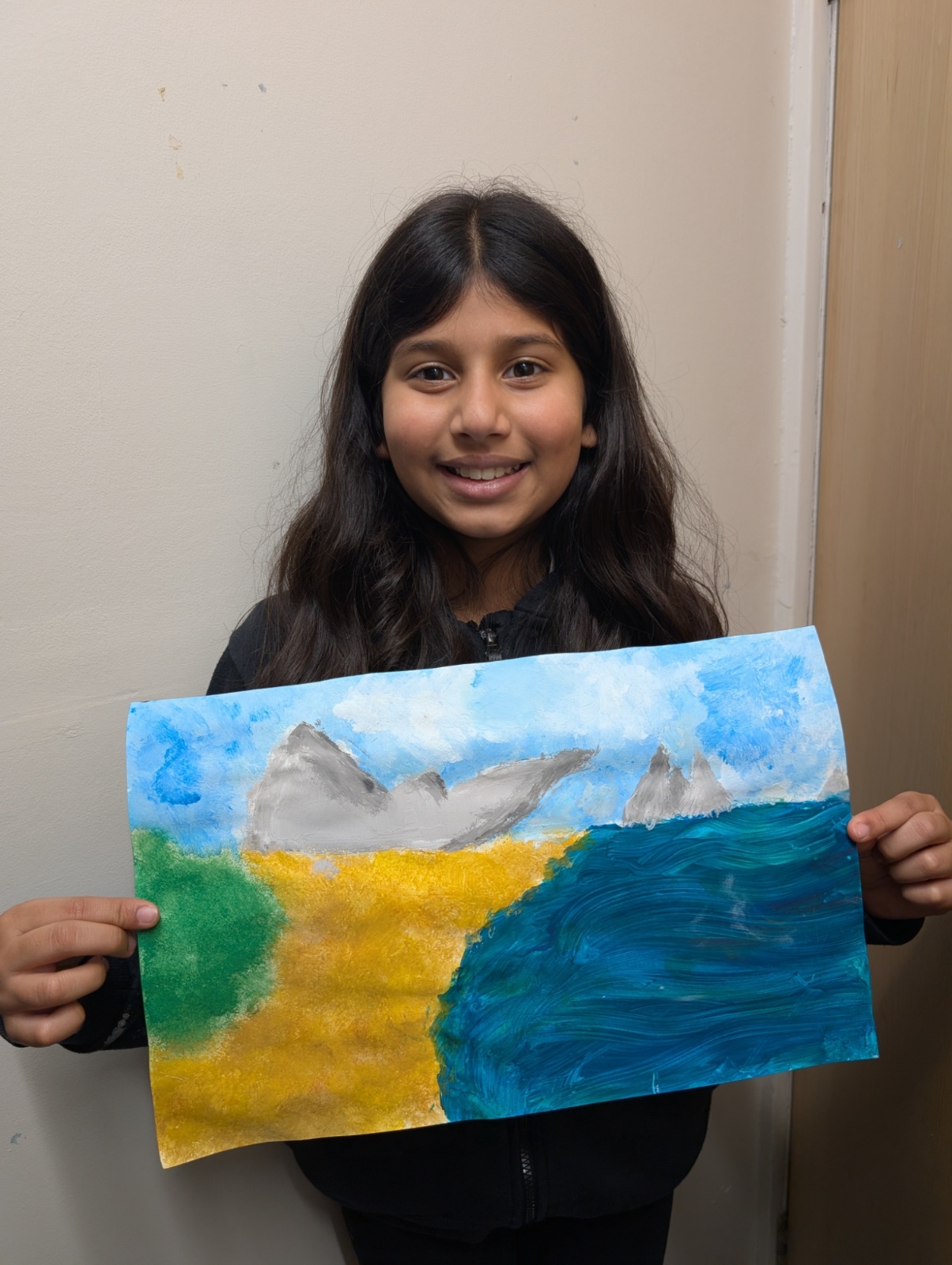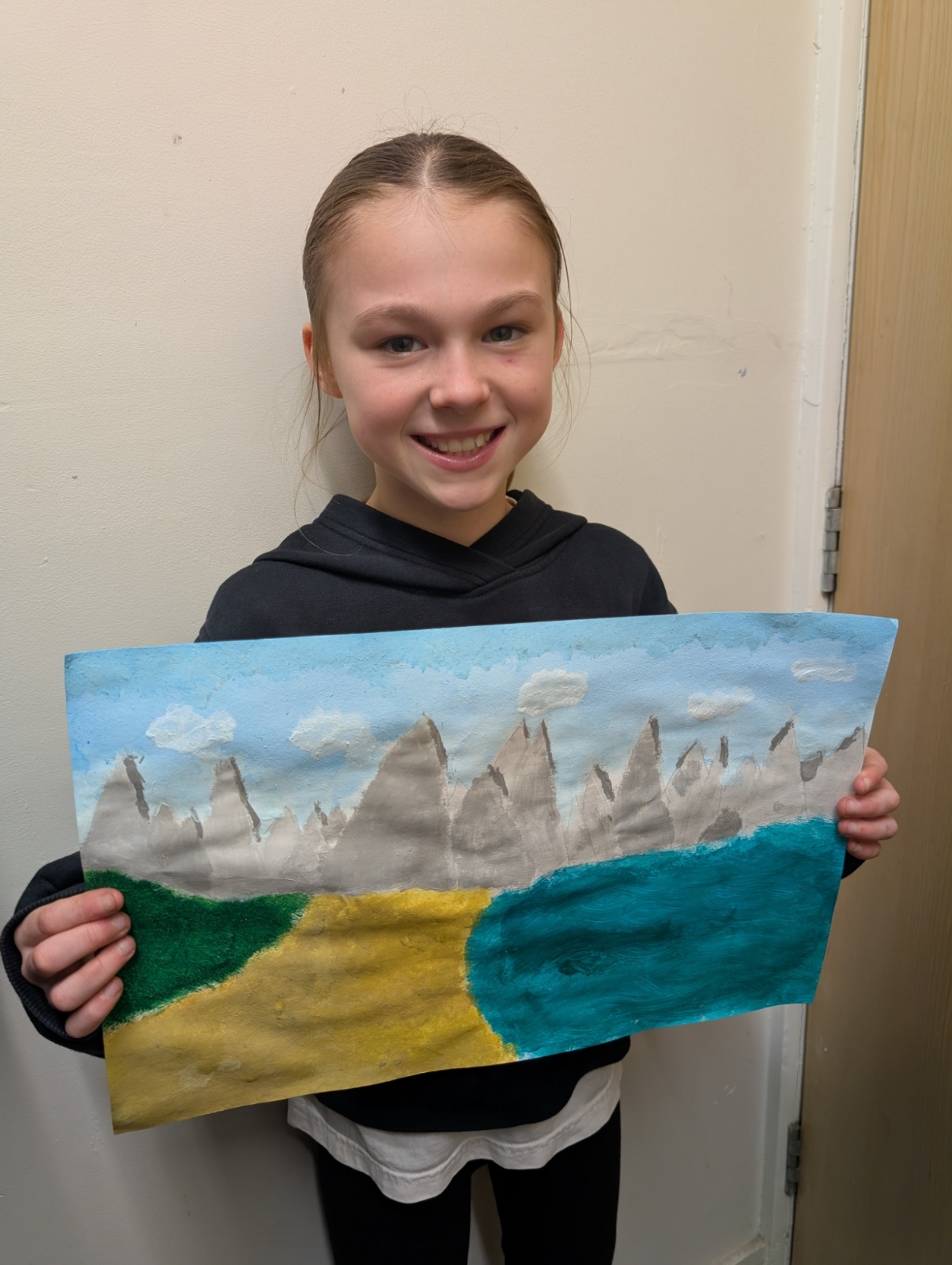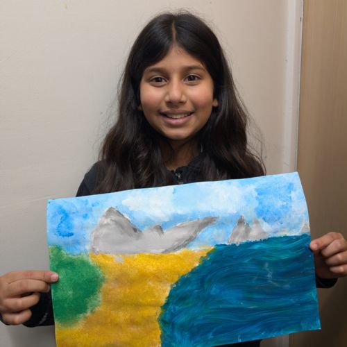 We focused on showing perspective in our paintings by making objects in the foreground larger and more detailed, and objects in the distance smaller and softer. This took a lot of patience and resilience, especially when waiting for layers of paint to dry or correcting small mistakes.