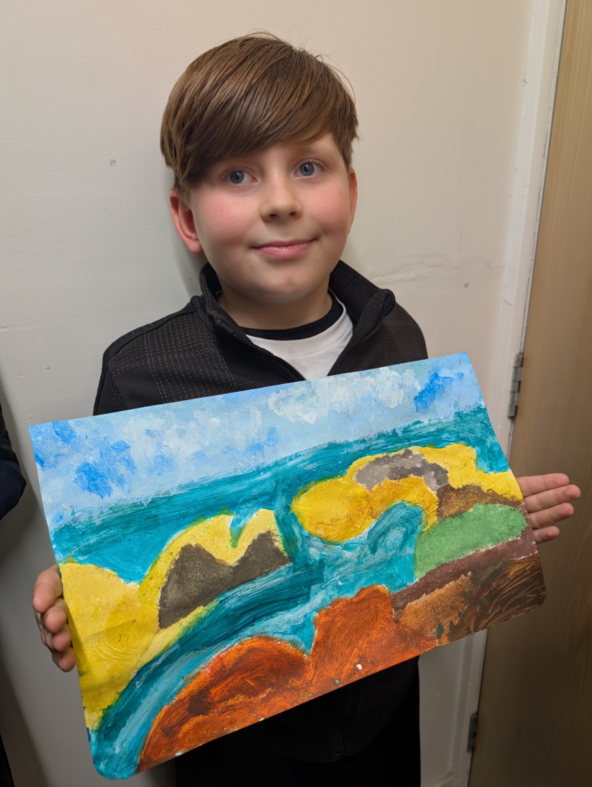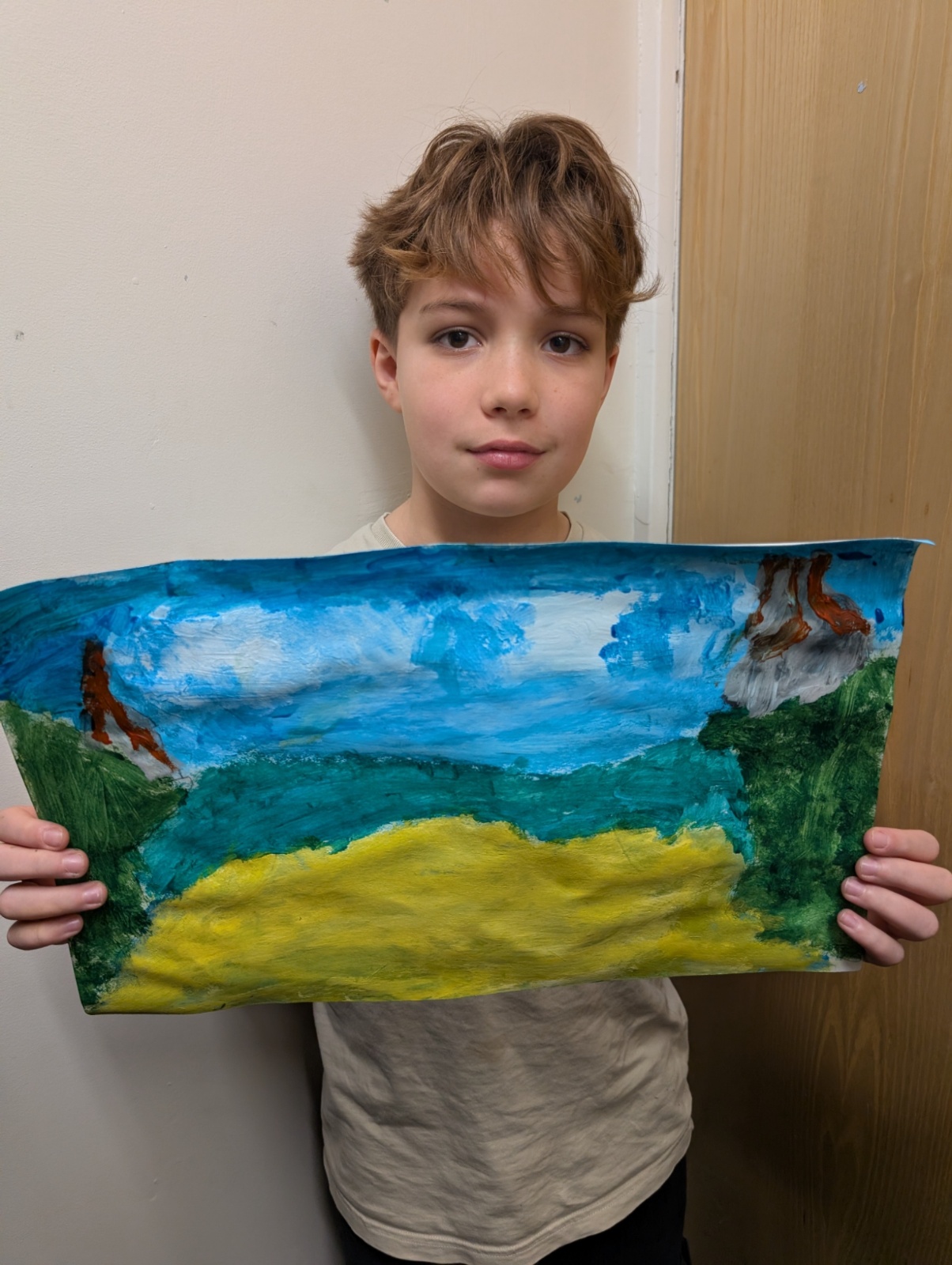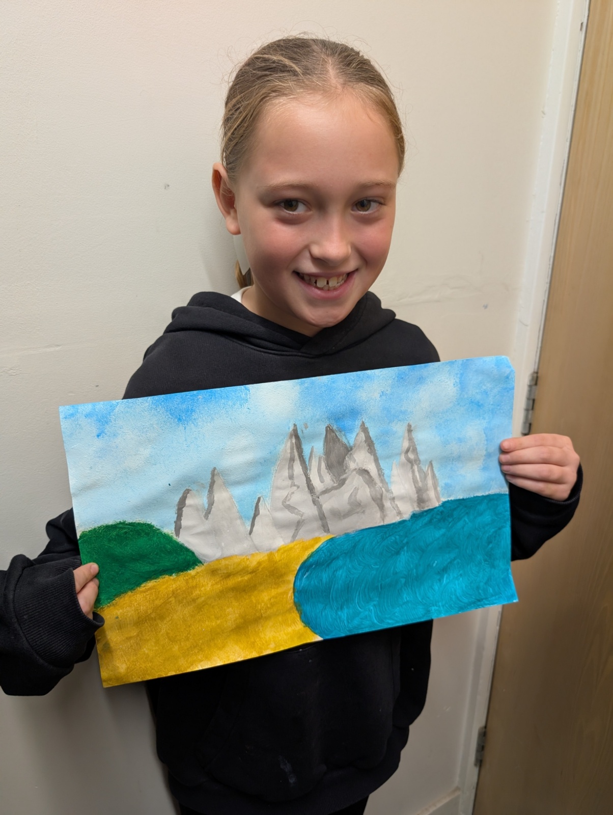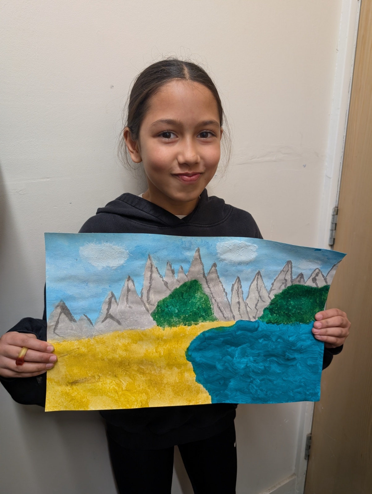 We focused on showing perspective in our paintings by making objects in the foreground larger and more detailed, and objects in the distance smaller and softer. This took a lot of patience and resilience, especially when waiting for layers of paint to dry or correcting small mistakes.