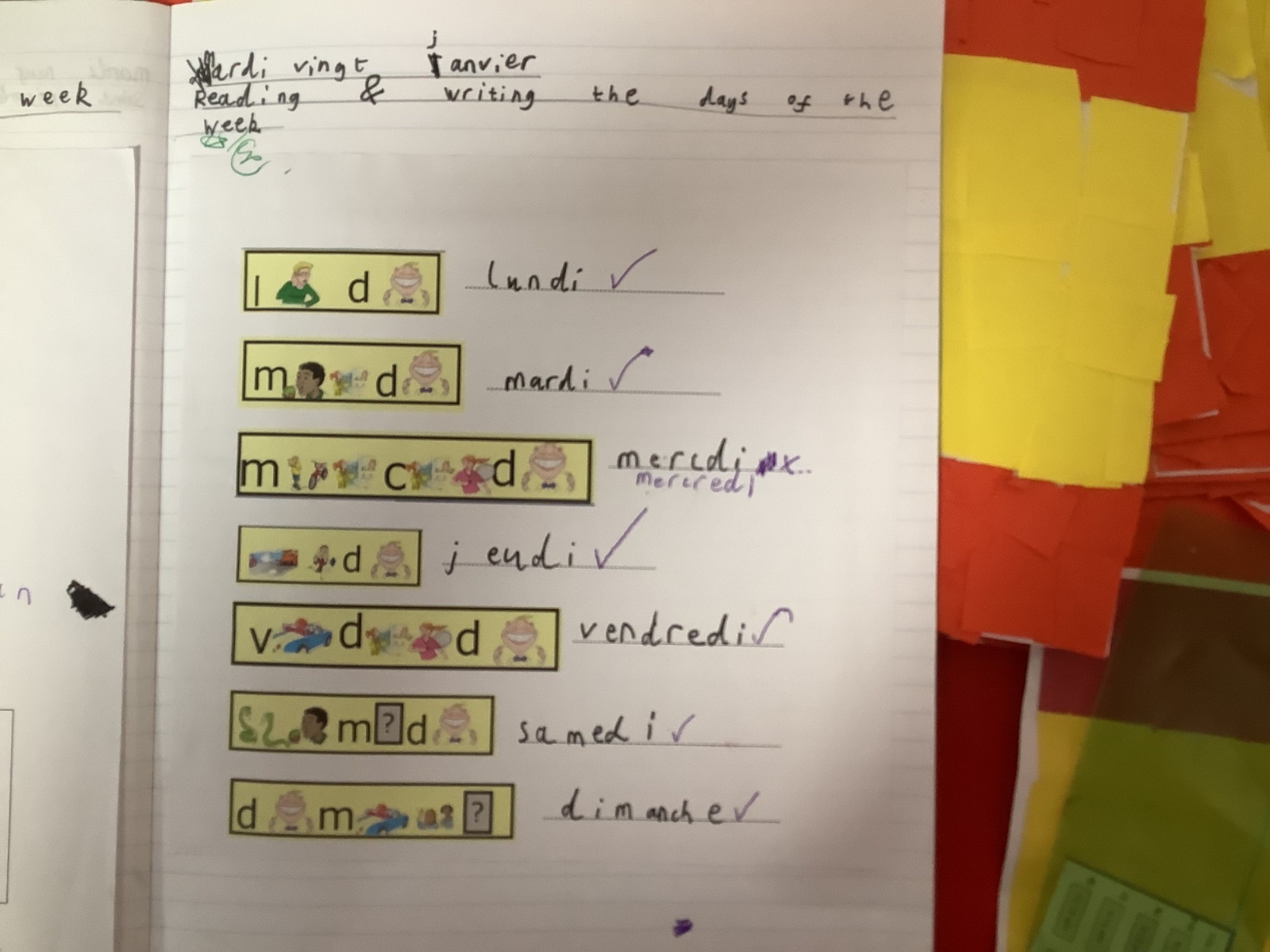 Finally, Madame Allison has been teaching the children the different sounds that vowels make in French. A really challenging task, but they did brilliantly at identifying the different sounds, focussing on the days of the week.