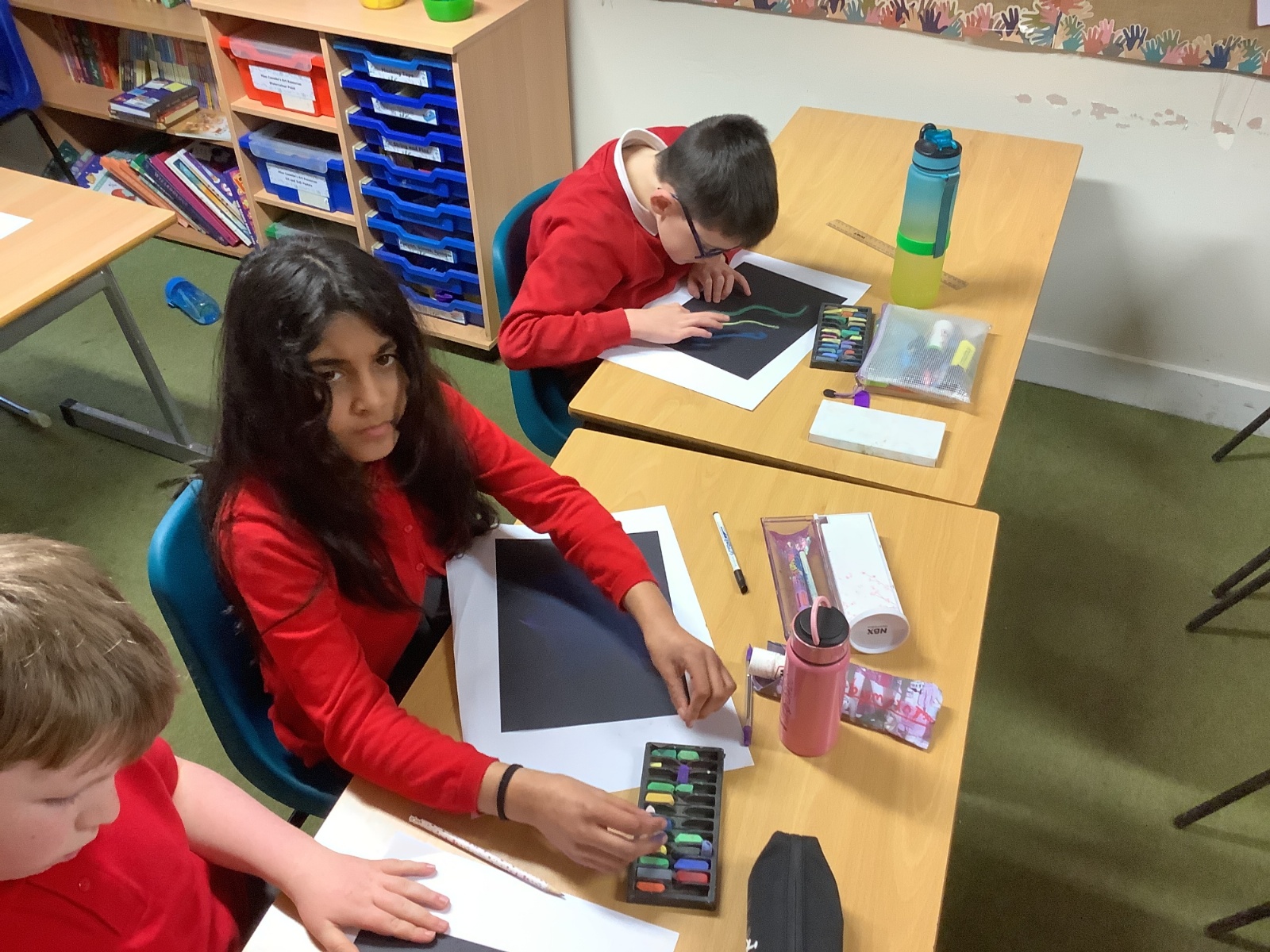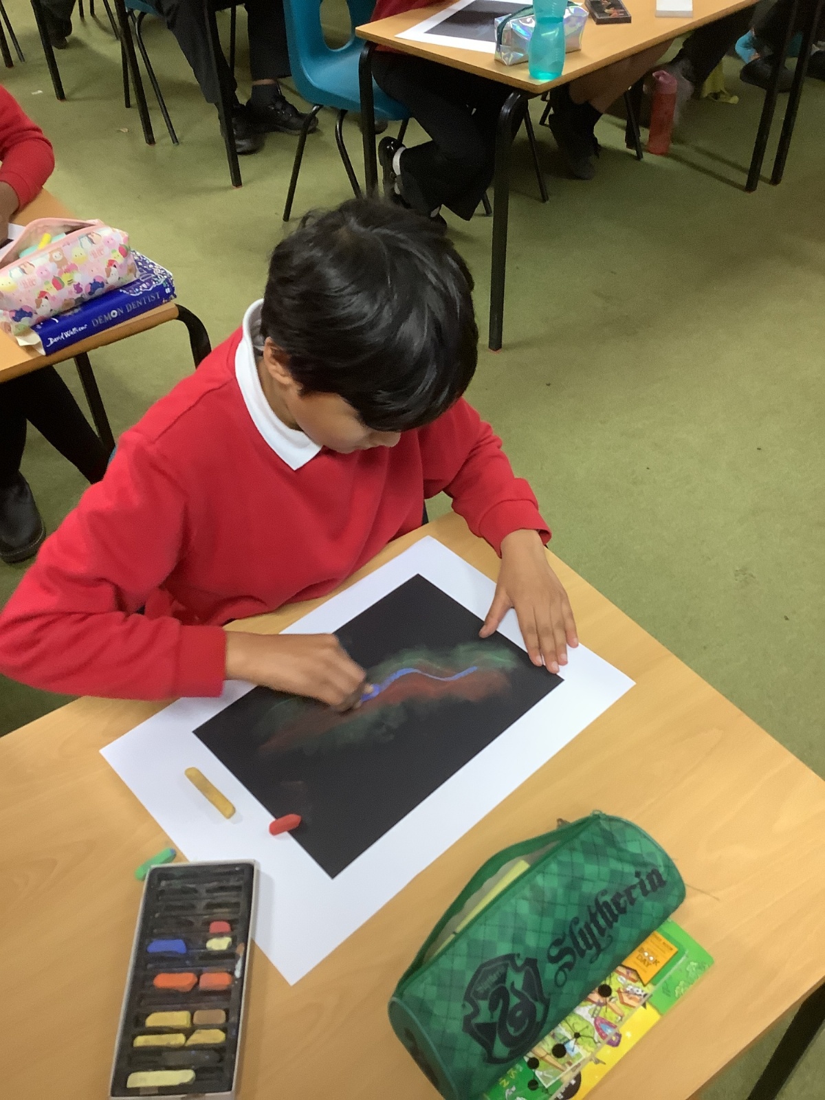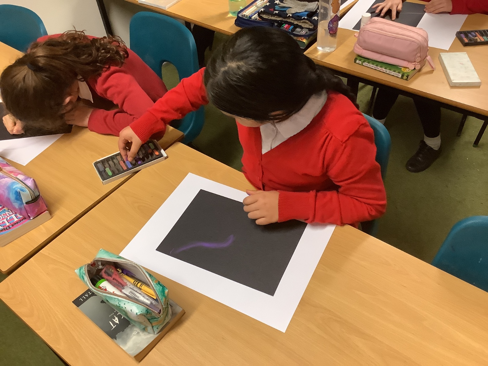 In Art, the children continued with their space-themed topic, experimenting with a range of exciting techniques. They used soft pastels to create beautiful nebula effects, paint splatter with paintbrushes to represent stars, and oil pastels to design vibrant planets. The children compared the different media they worked with, including sponges, acrylic paints, and pastels, and thoughtfully explained which they preferred and why. After lots of experimentation and inspiration, they designed a draft for their retrofuturism collage piece, ready for the next stage of the project.