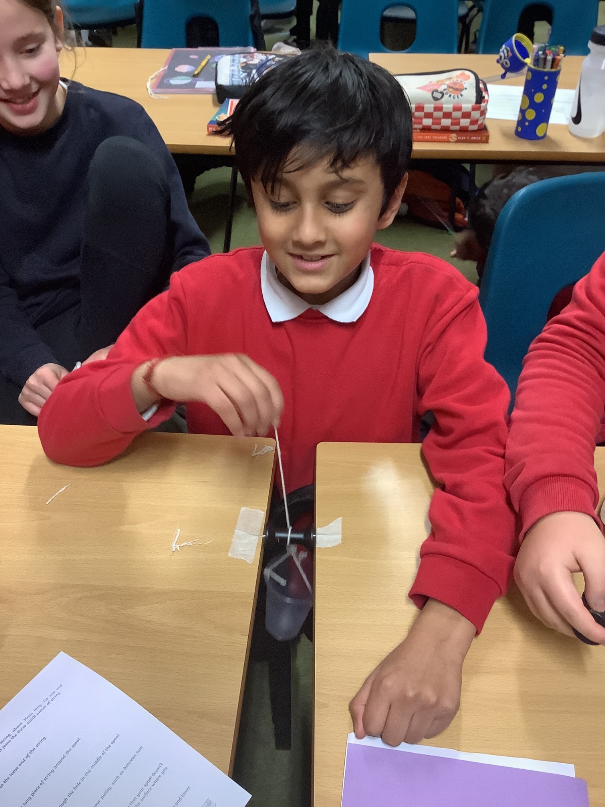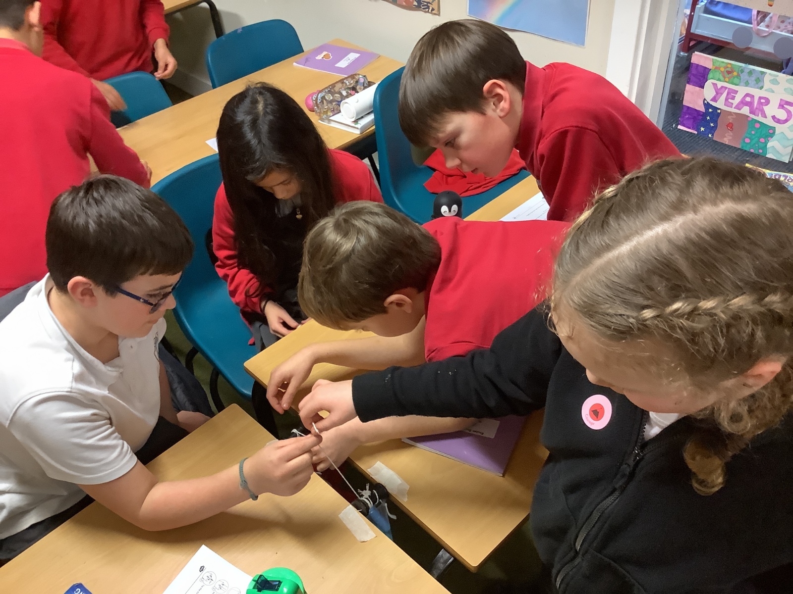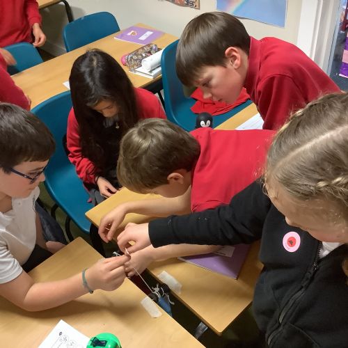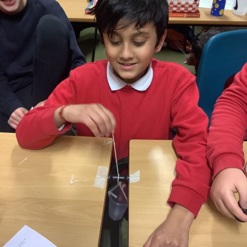 In Design and Technology, pupils worked in groups to create an effective pulley mechanism. They carefully followed instructions and showed excellent collaboration and teamwork, supporting one another to achieve a successful final outcome.