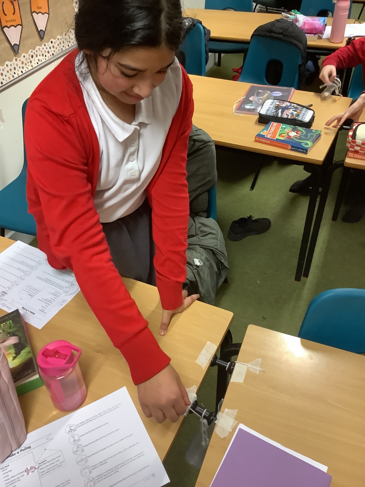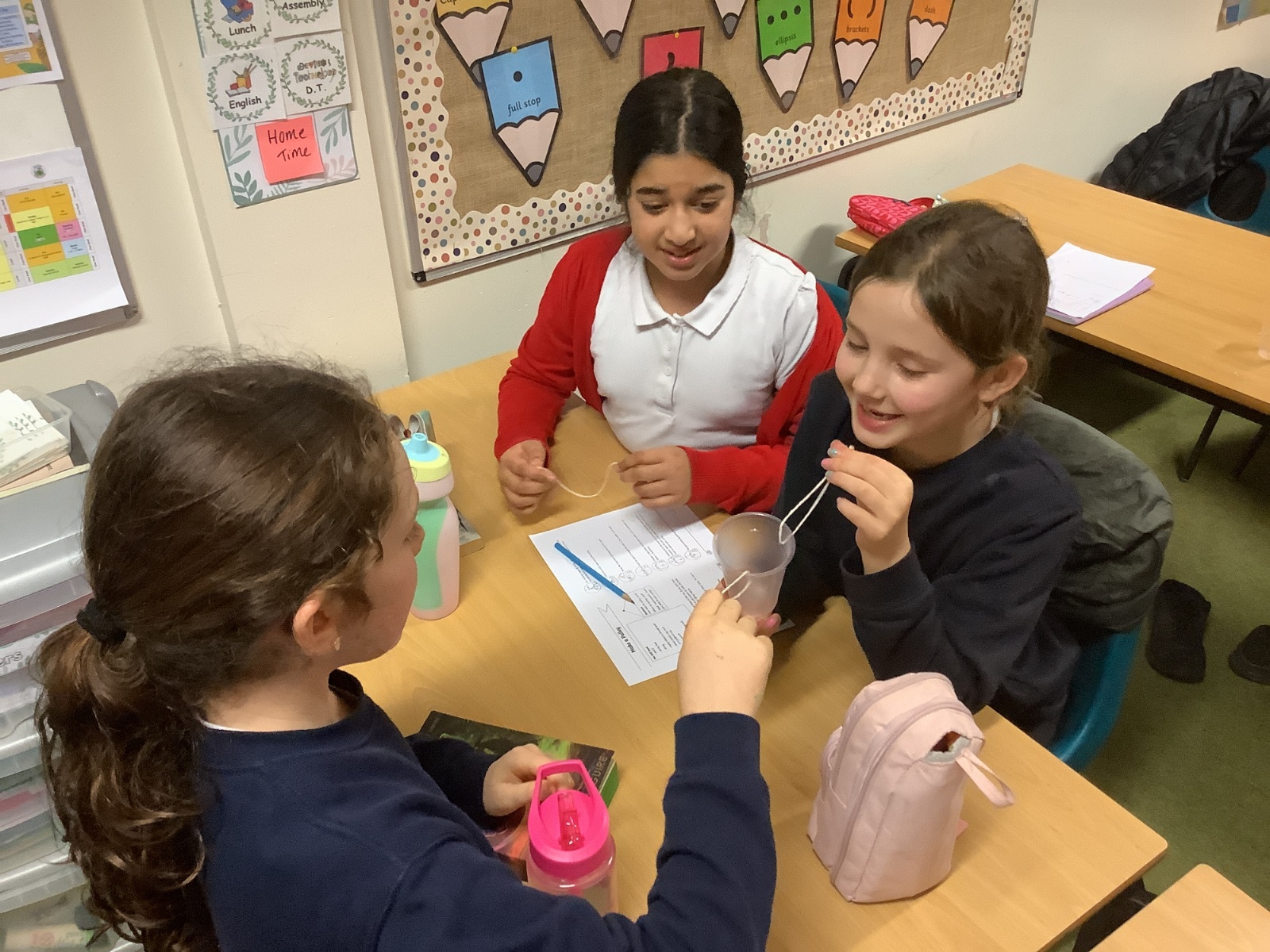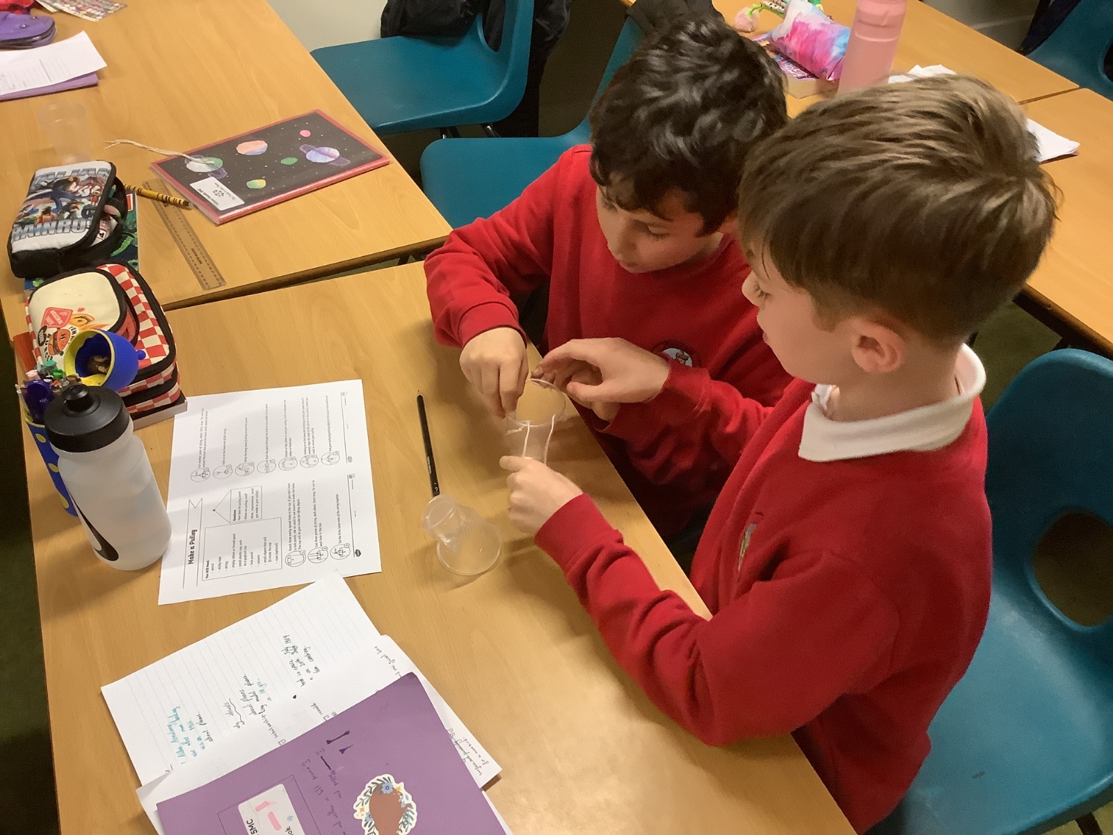 In Design and Technology, pupils worked in groups to create an effective pulley mechanism. They carefully followed instructions and showed excellent collaboration and teamwork, supporting one another to achieve a successful final outcome.