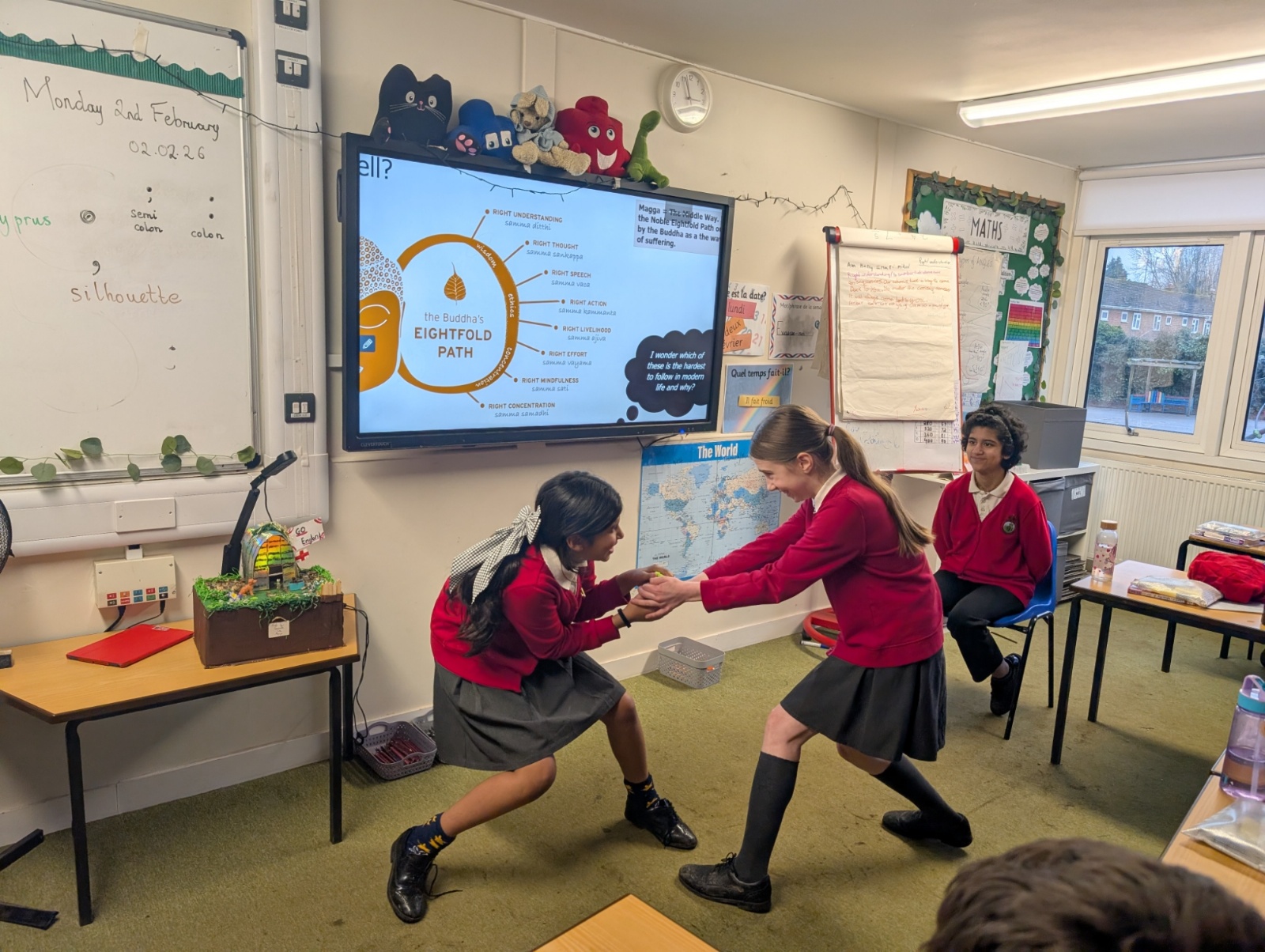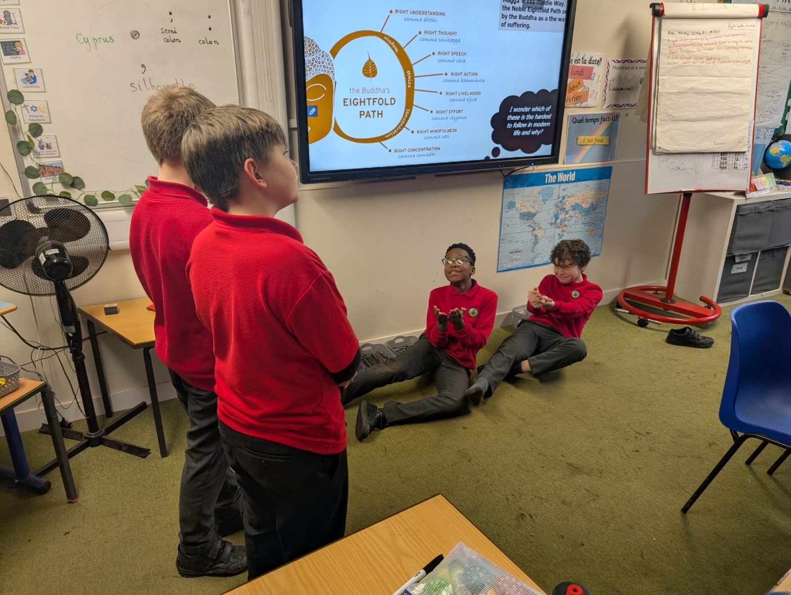 To help us understand this better, we worked in groups to act out short skits, each one demonstrating a different part of the Eightfold Path. This made the learning more practical and helped us think about how beliefs can influence actions.