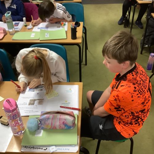 In Maths, the children took part in Buddy’s Maths Challenge, working together as a class to solve clues and find the 10 missing parts of the key. Their teamwork paid off, and they won the fantastic prize of 10 stars in the jar — well done, Year 5!