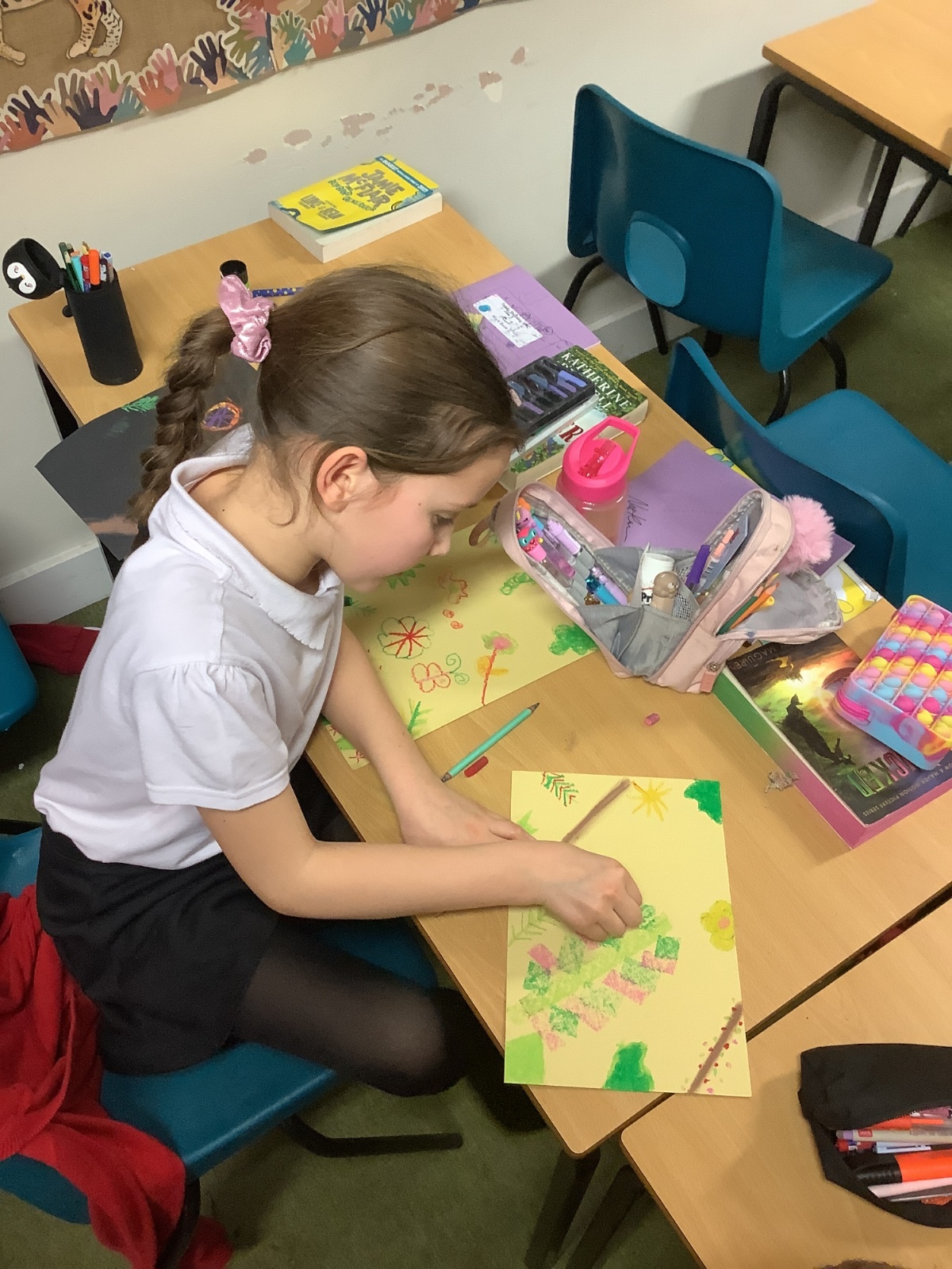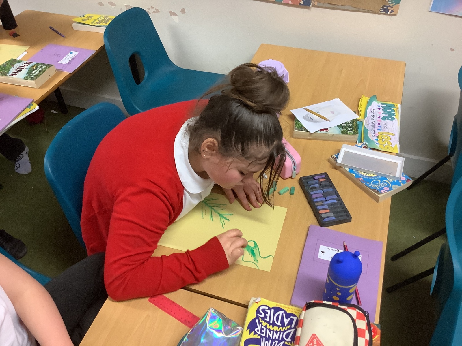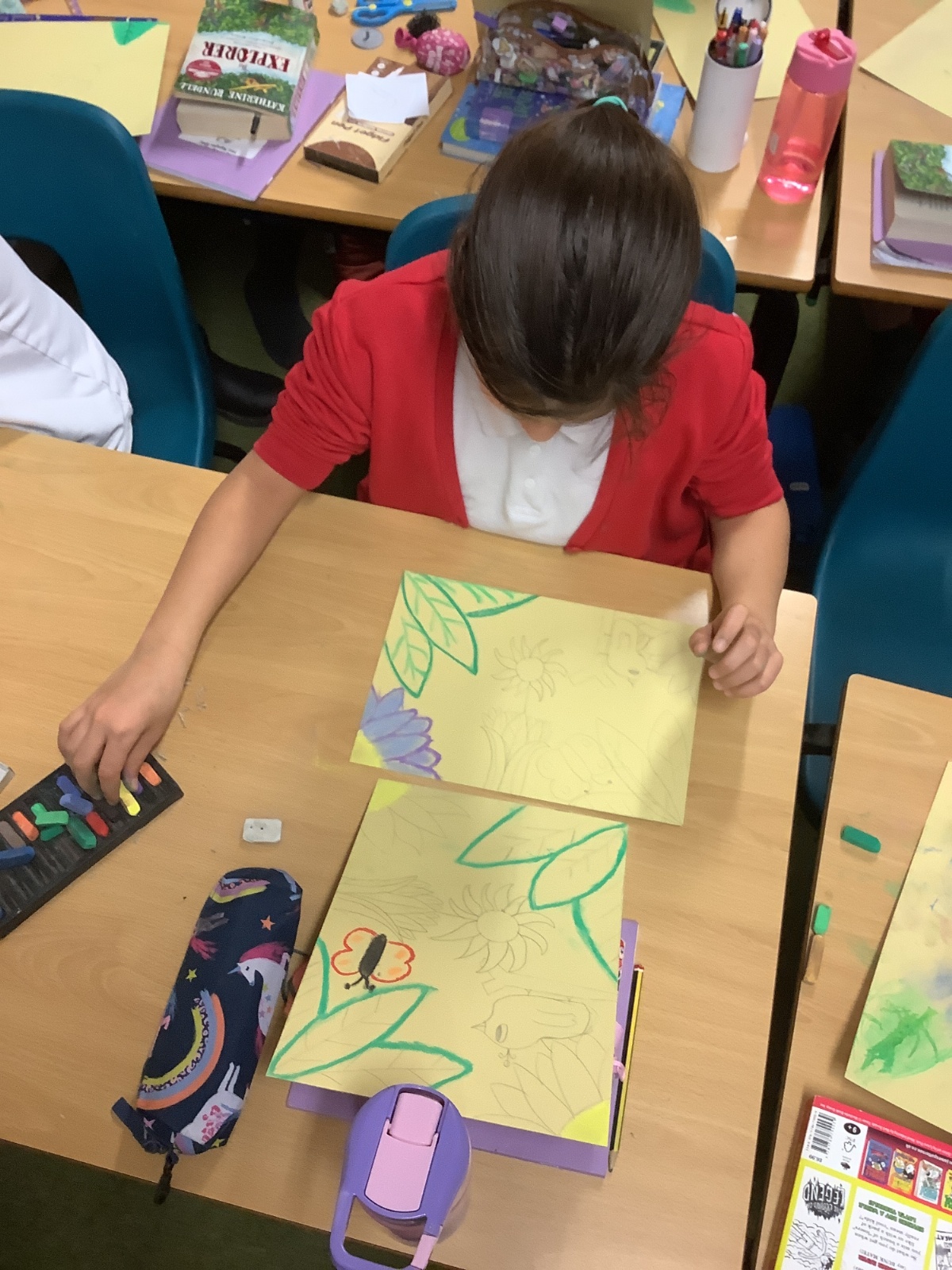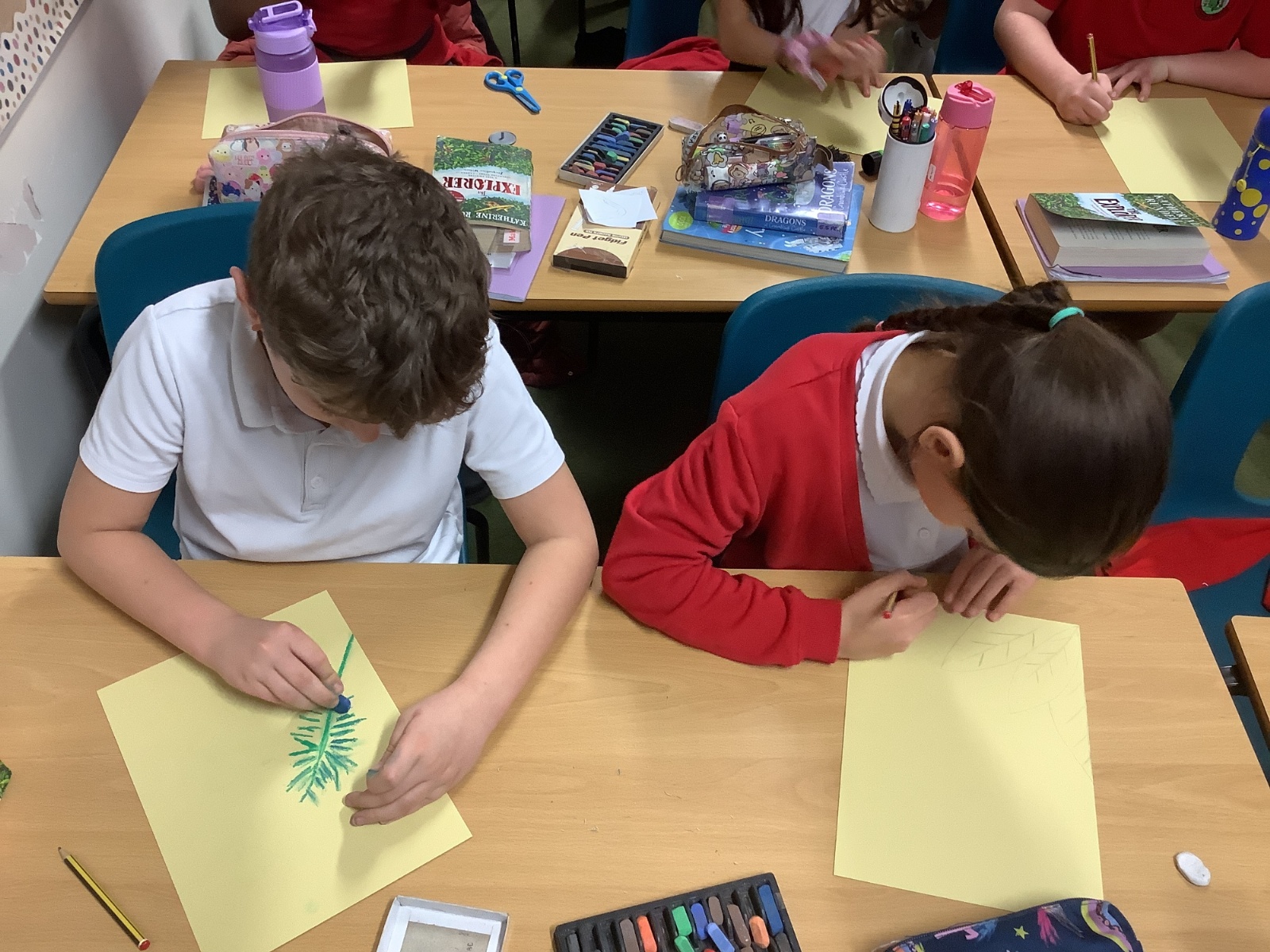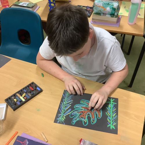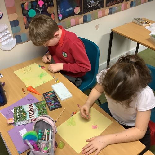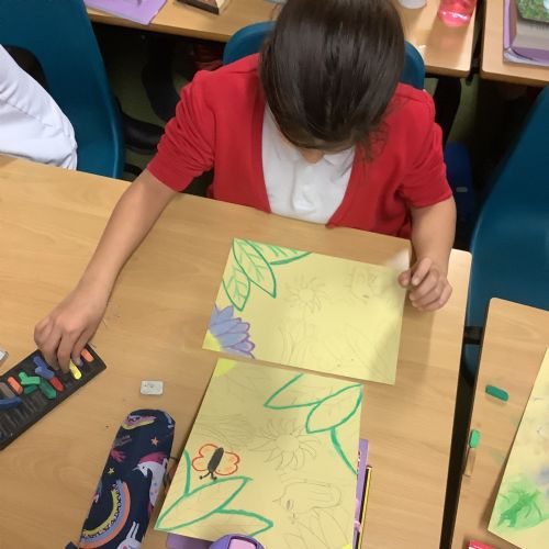 In Art, we explored the vibrant colours and dense foliage of the rainforest. Using soft pastels and oil pastels, the children created beautiful front covers inspired by tropical plants, bold greens and layered textures. They experimented with blending techniques and layering colour to create depth and texture. The results are stunning and really capture the richness of the Amazon environment.