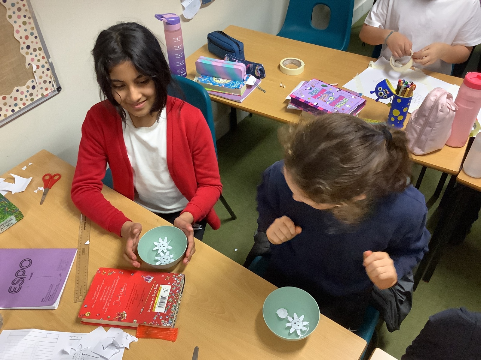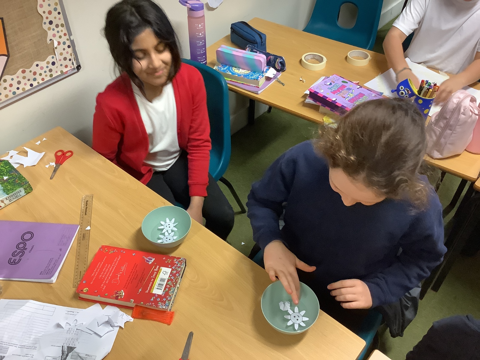 Throughout the week, the children took part in a range of investigations. A particular highlight was exploring capillary action in paper. The children made beautiful paper flowers and tested how quickly the petals opened when placed in water. They compared different flower sizes and carefully observed which ones opened the fastest. It was wonderful to see them predicting, testing and discussing their results like real scientists.